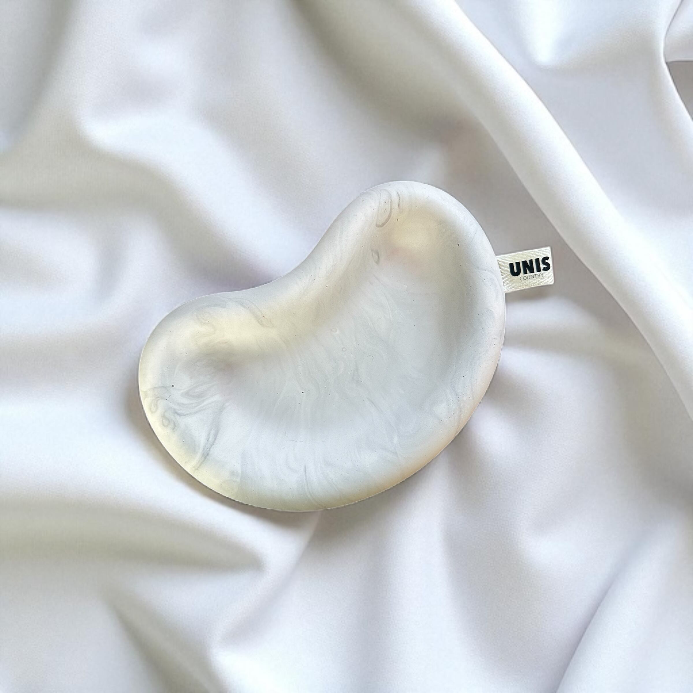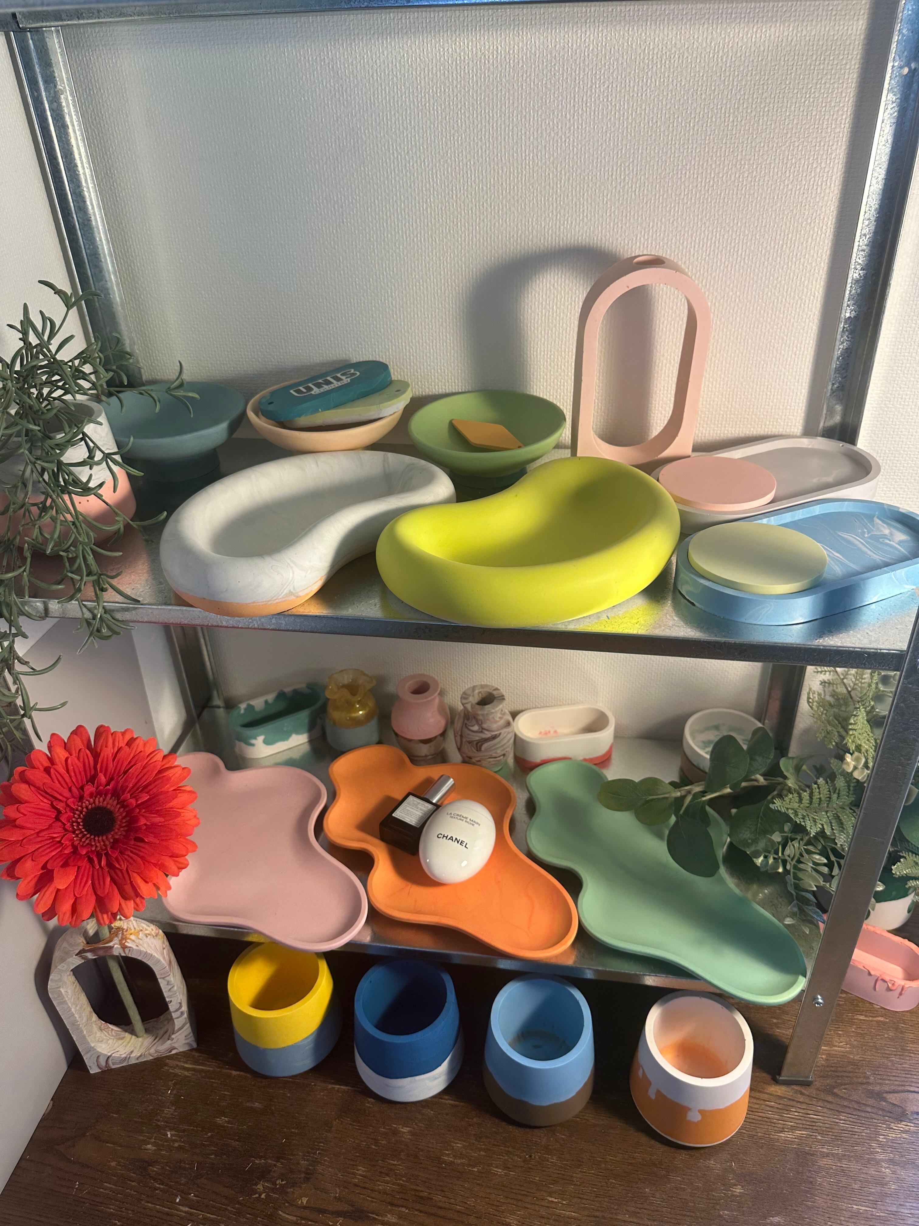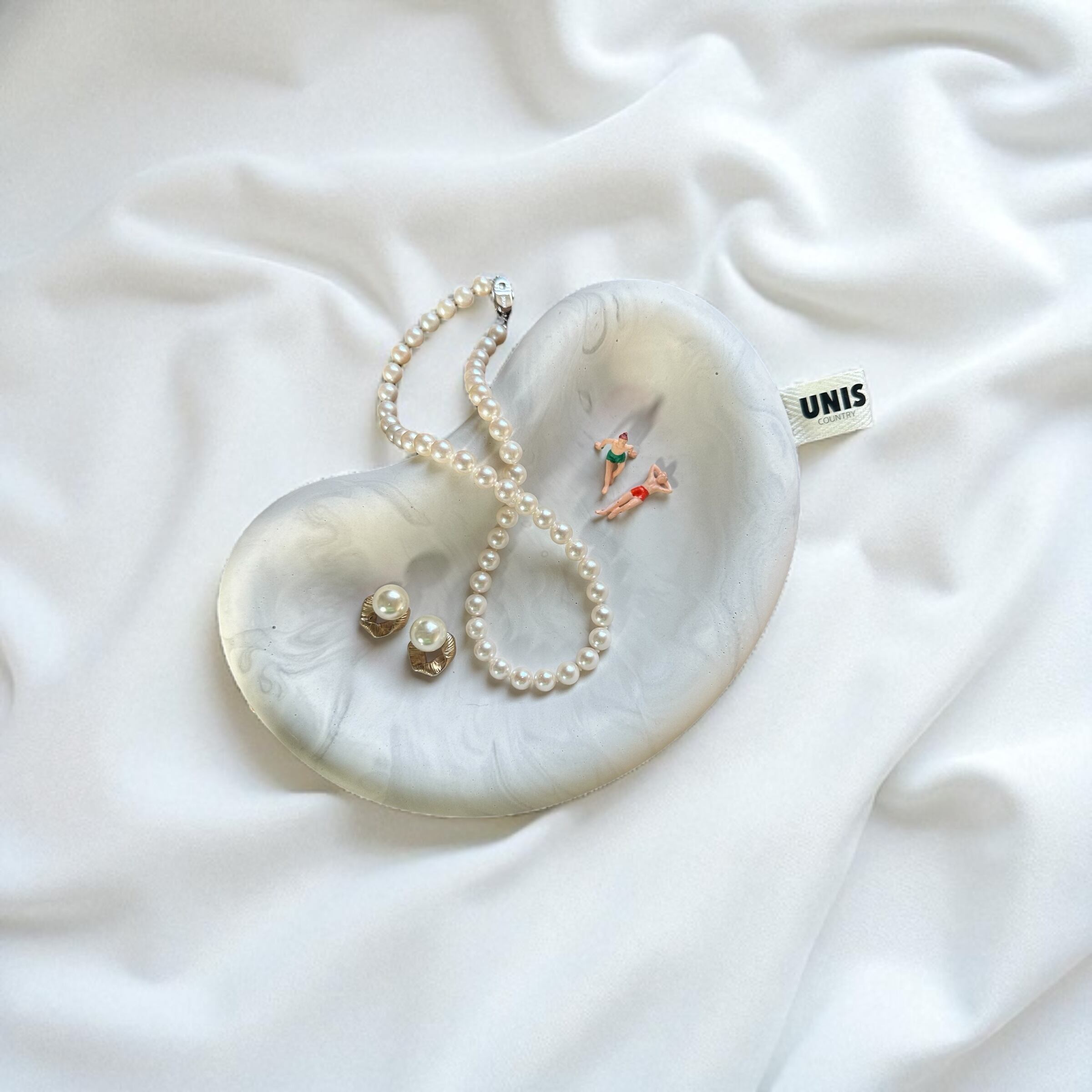 素材には、強度とやさしい手触り、環境への配慮を両立したジェスモナイトという素材を使用しています。ピアス、リング、鍵、コスメ、香水などお気に入りのアイテムたちを、このトレイに乗せてディスプレイできます。