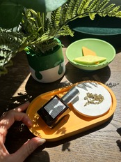 鮮やかなオレンジと落ち着いたトーンが絶妙に組み合わさったこのトレイは、お部屋をパッと明るくします!毎日の小物をまとめて、存在感を引き立てるアイテムです。