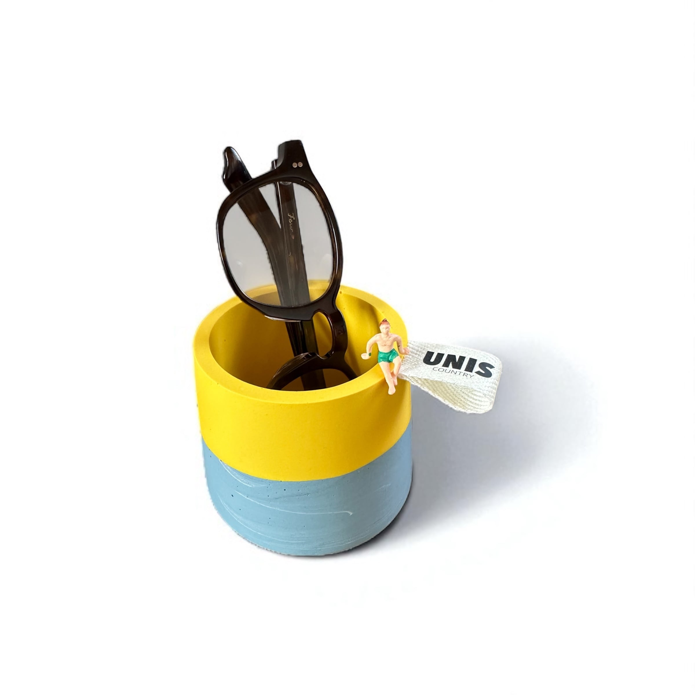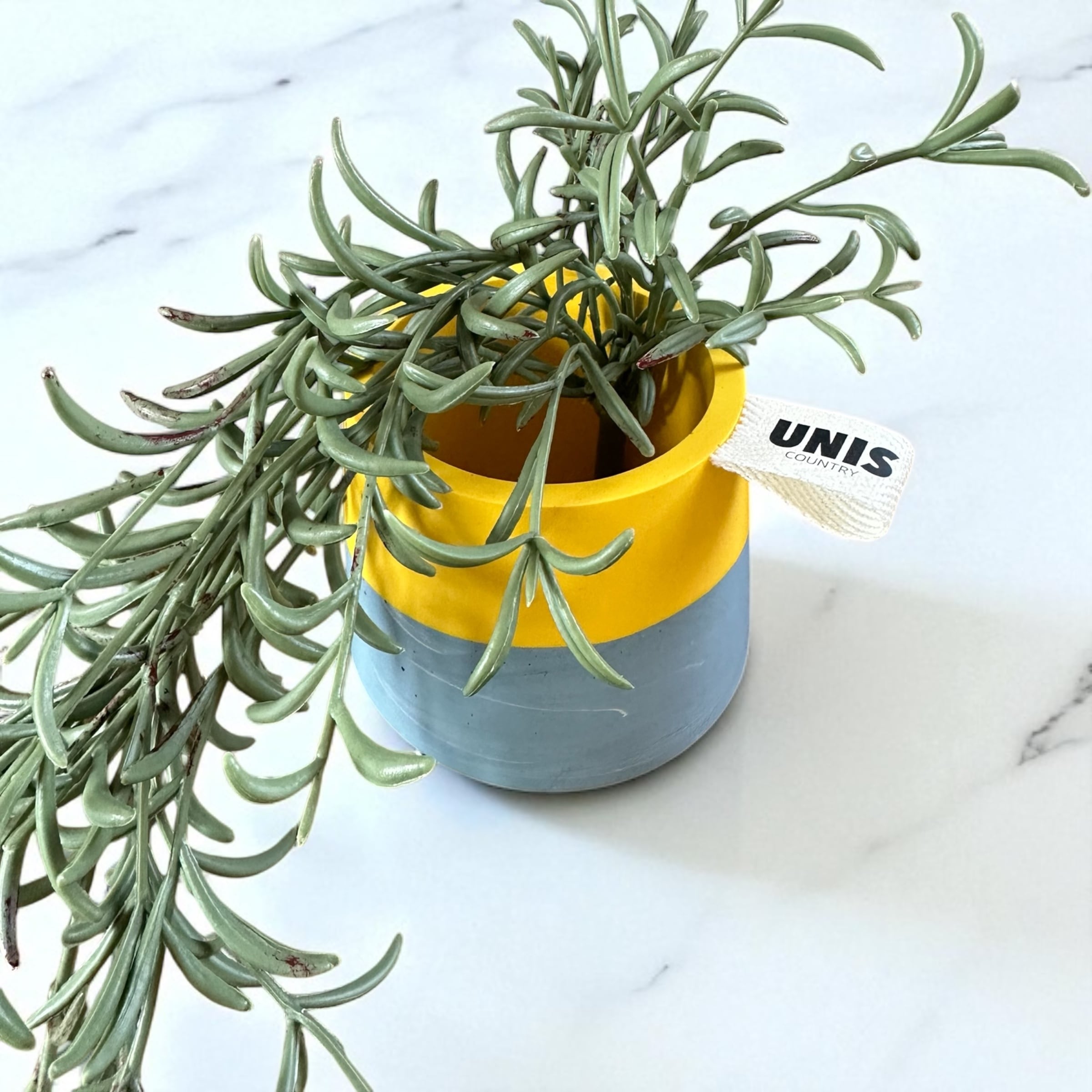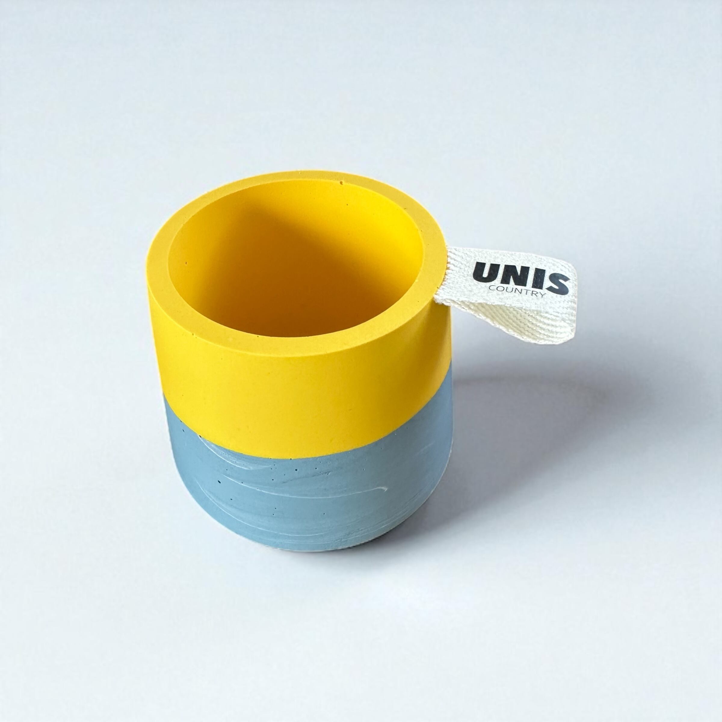 鮮やかなイエローに、落ち着いたグレーブルーを組み合わせたツートーンデザイン。