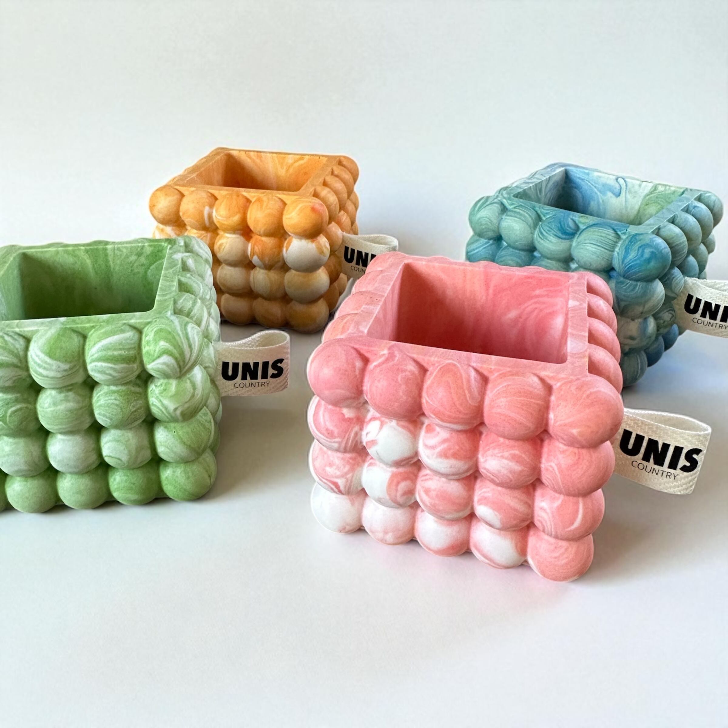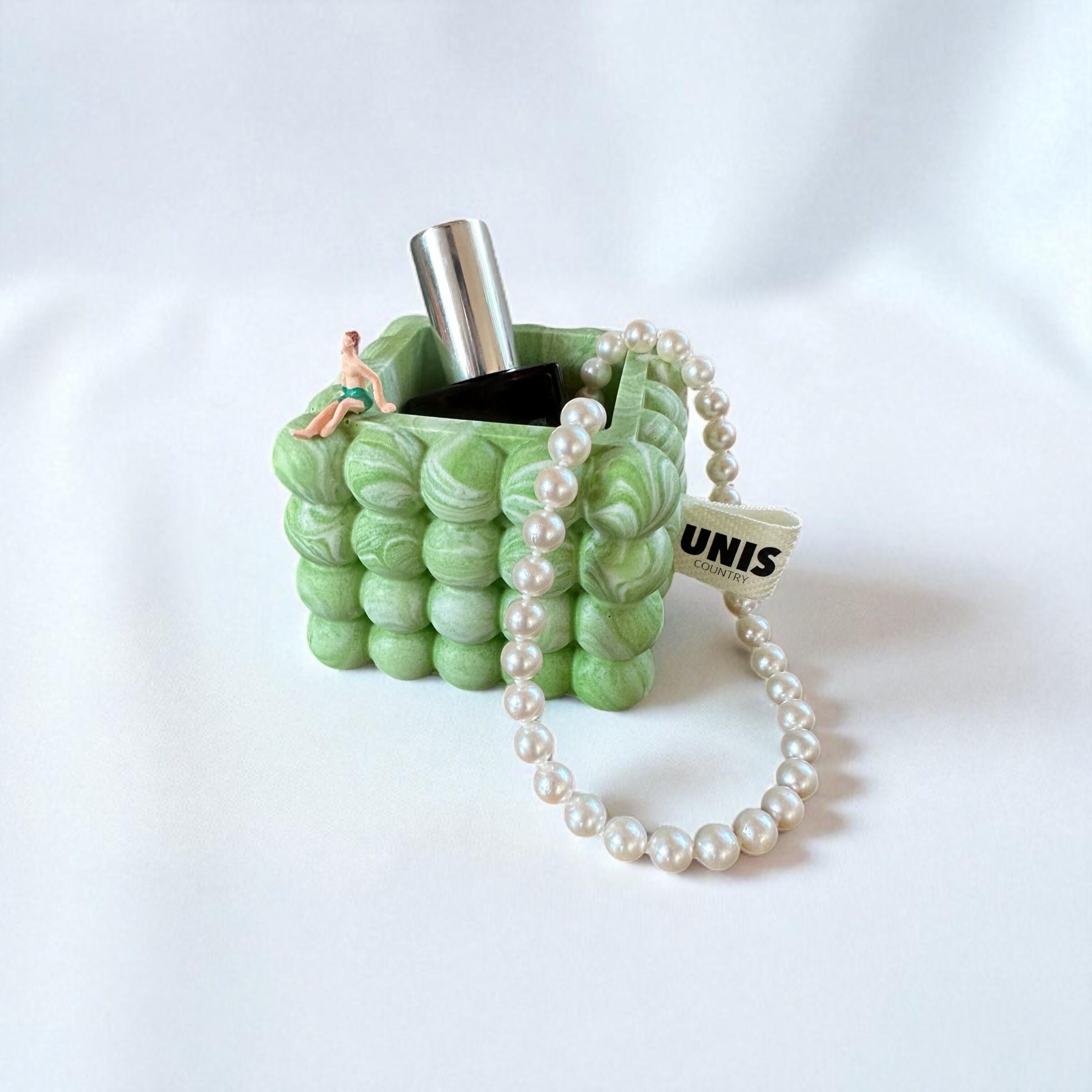 明るく鮮明なグリーンマーブルカラーと、目を惹くポコポコフォルムが印象的。