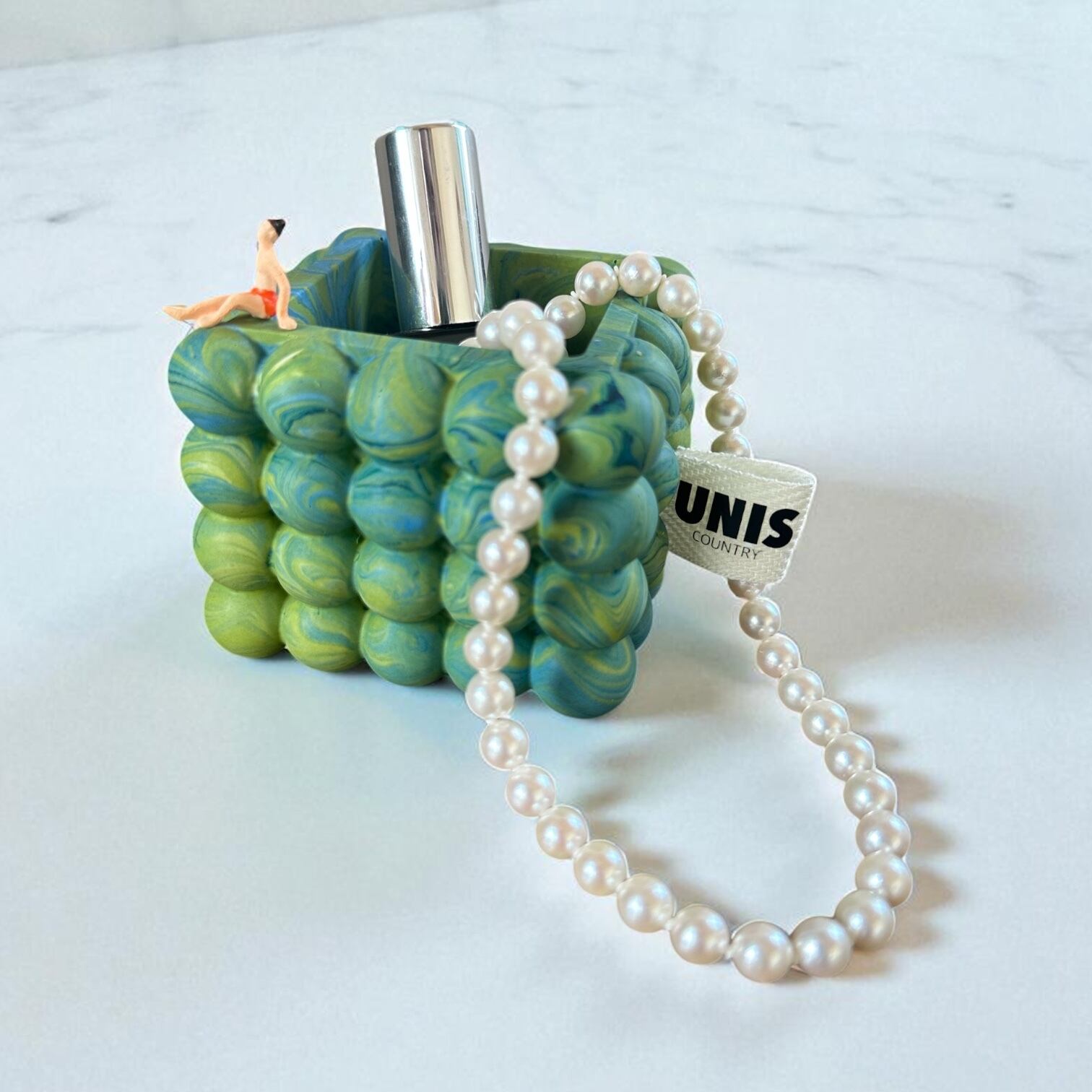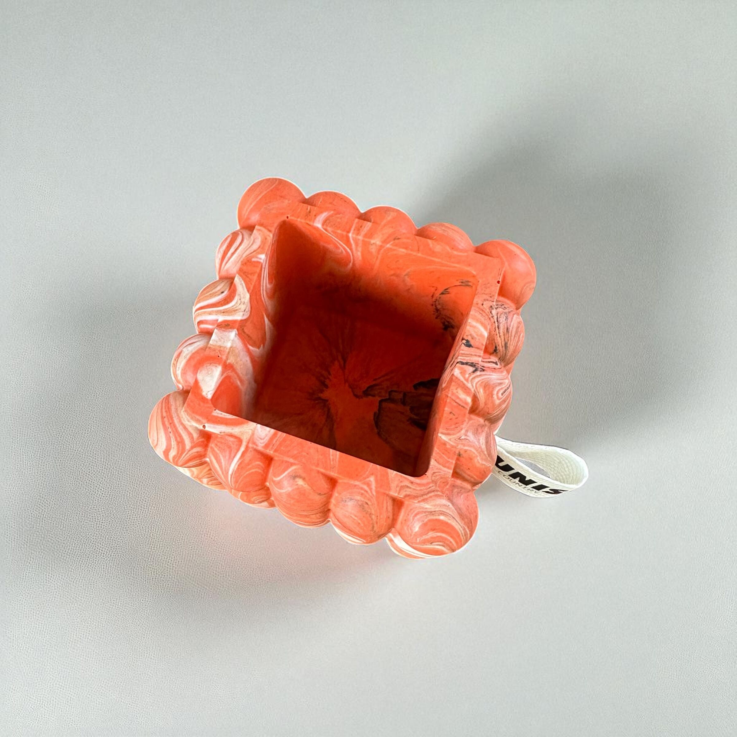モダンでシックなオレンジマーブルカラーと、目を惹くポコポコフォルムが印象的。