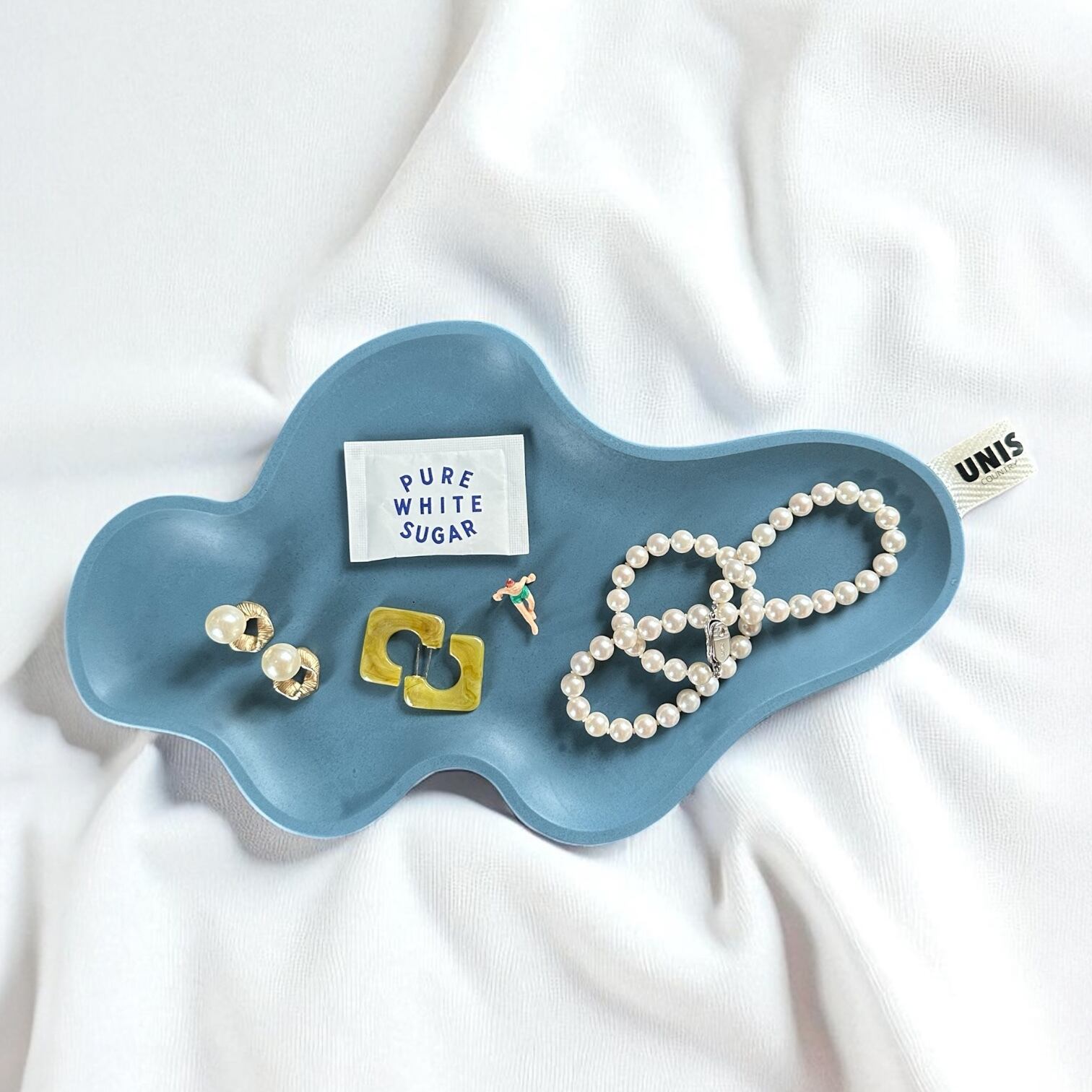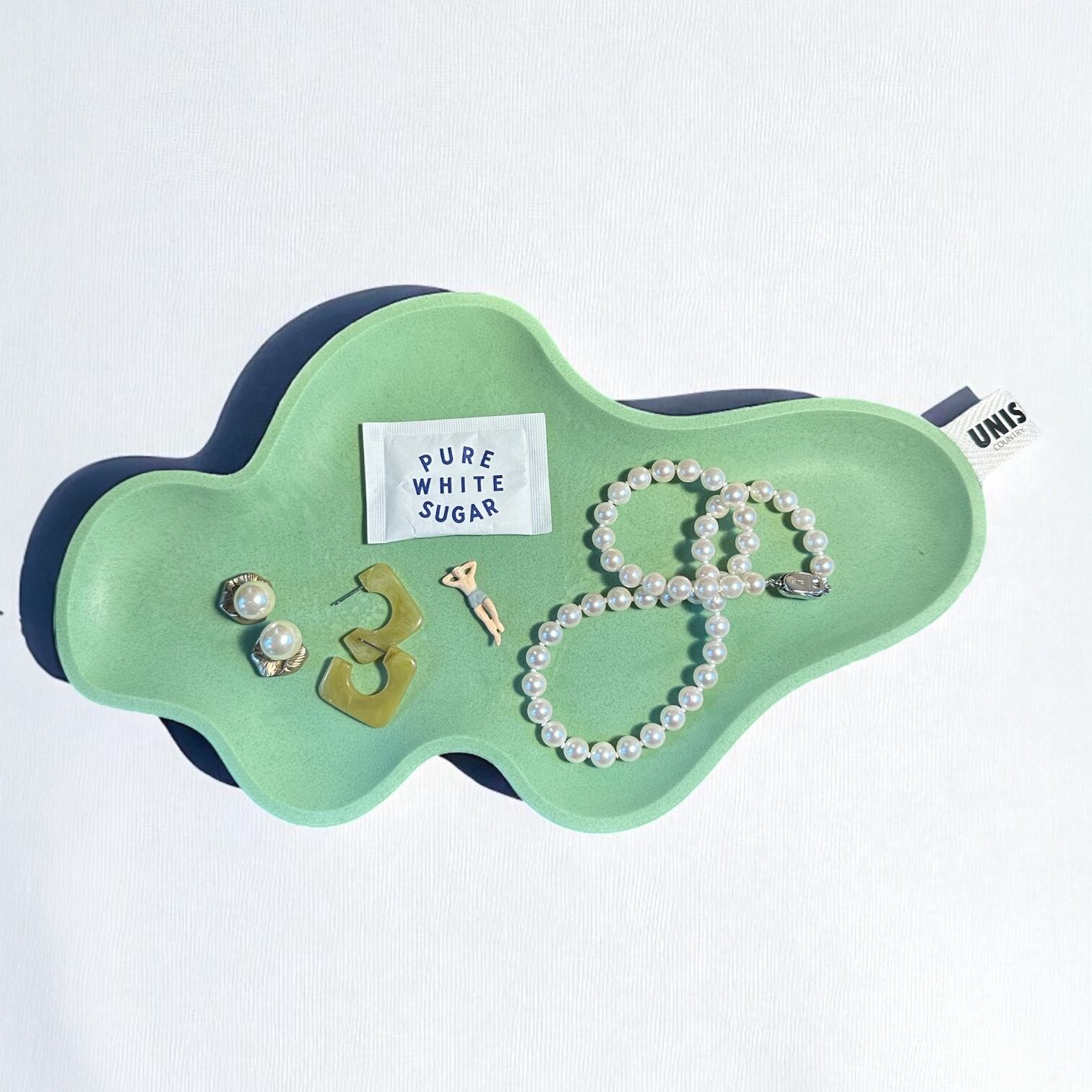 個性的なフォルムが目を惹く、ミントカラーのアクセサリートレイ。