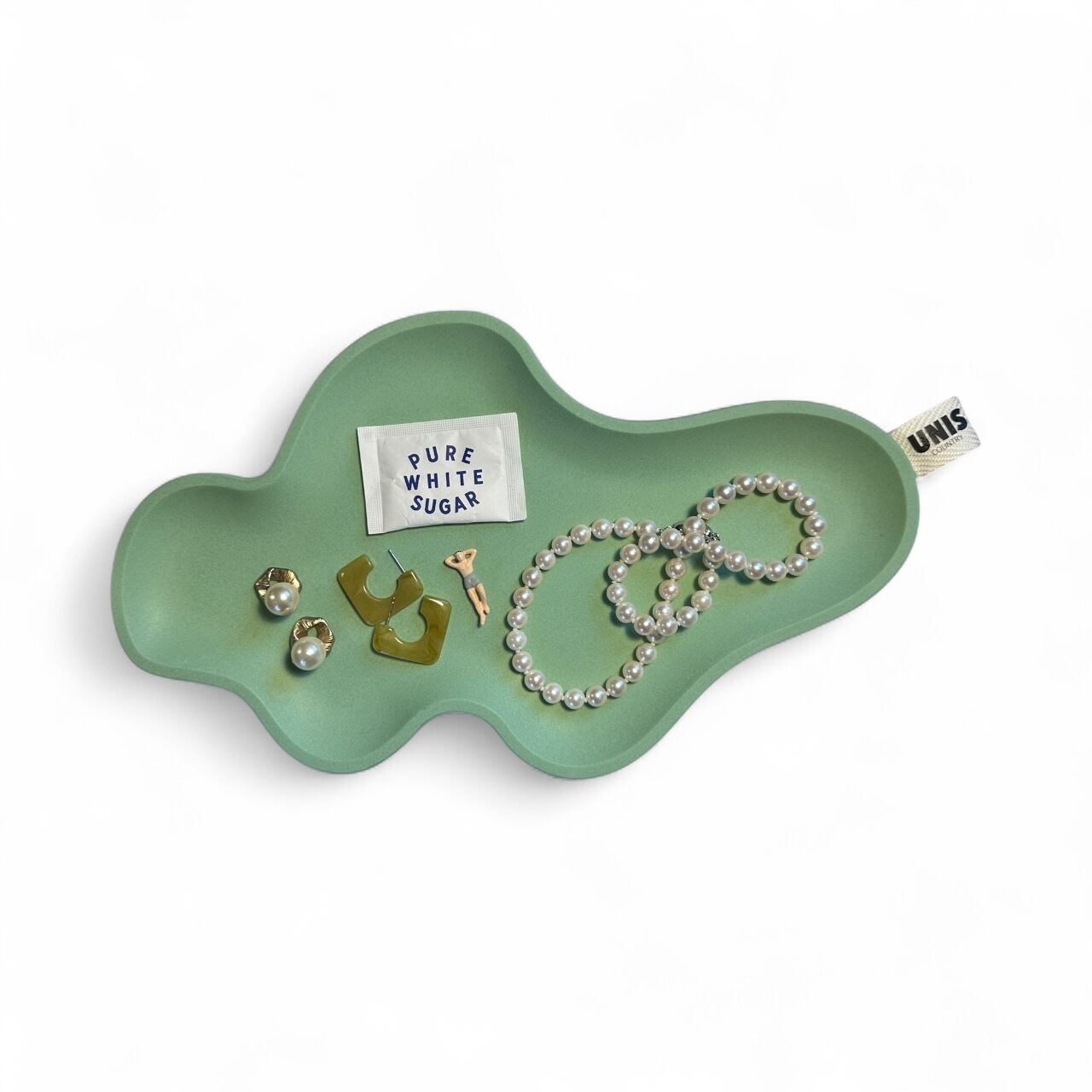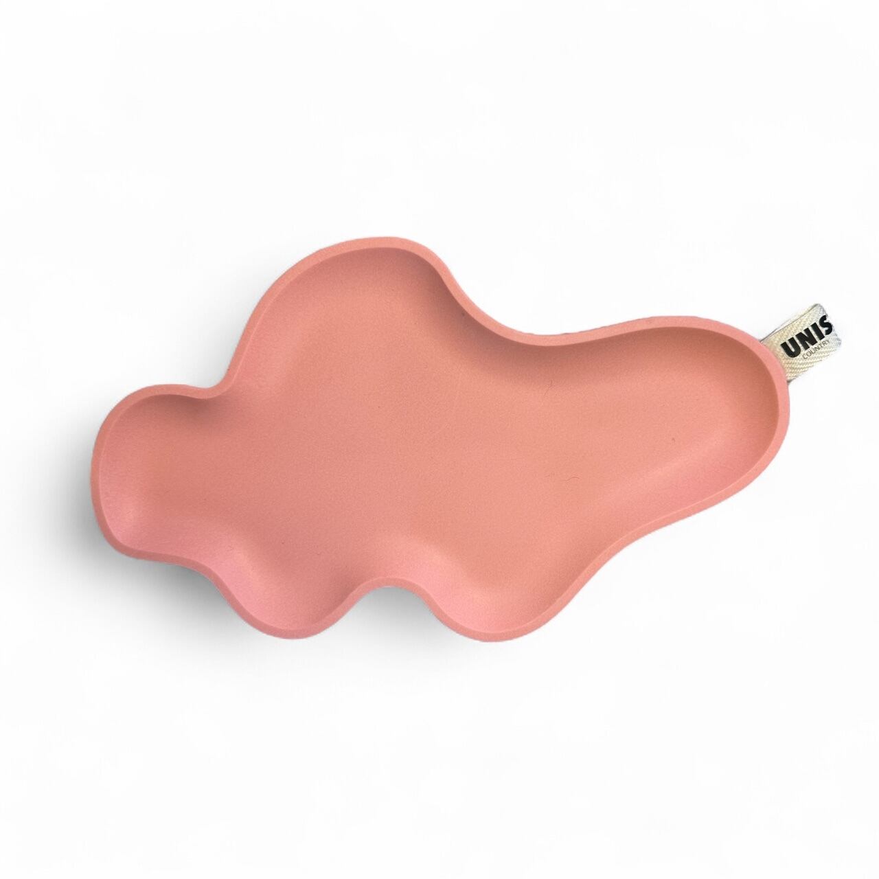 個性的なフォルムが目を惹く、ピンクのアクセサリートレイ。