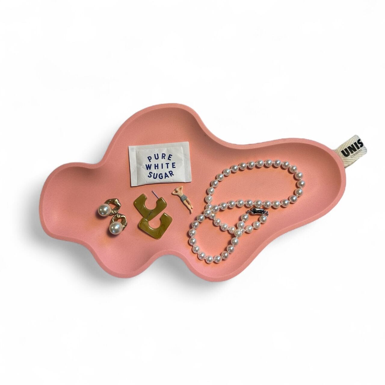 個性的なフォルムが目を惹く、ミントカラーのアクセサリートレイ。