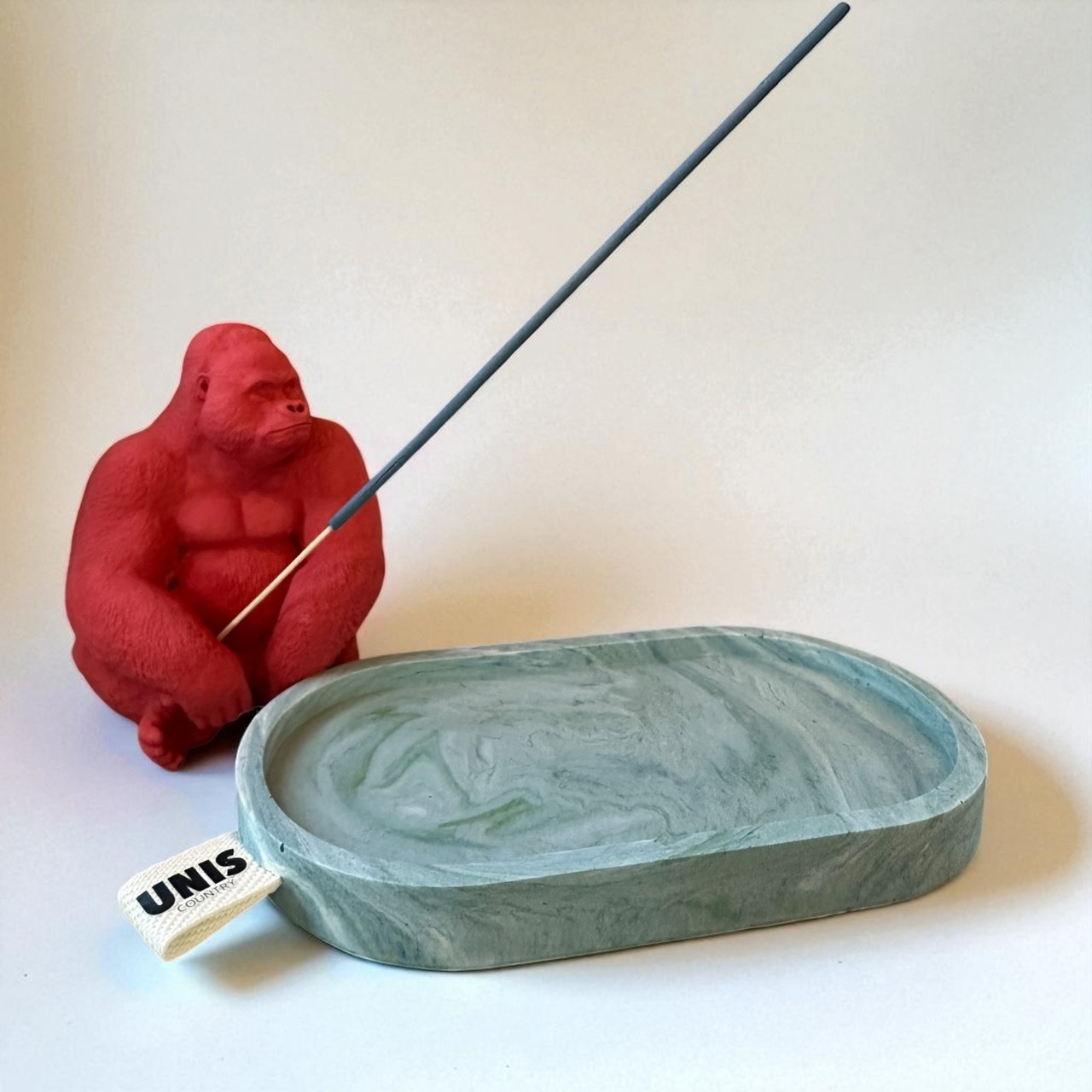 お香の長さやシーンに合わせて自由に配置を変えられ、ゴリラ単体のディスプレイとアクセサリートレイに分けて使う事も可能です。