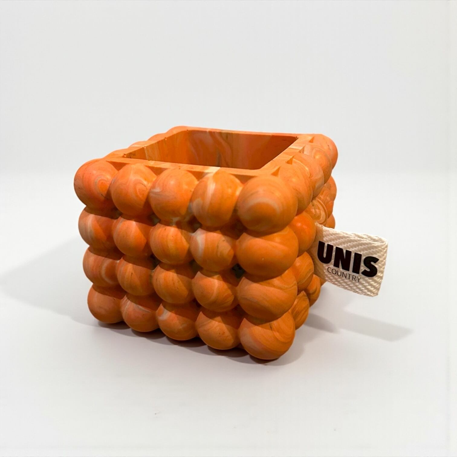 オレンジのマーブルカラーと、目を惹くポコポコフォルムが印象的。