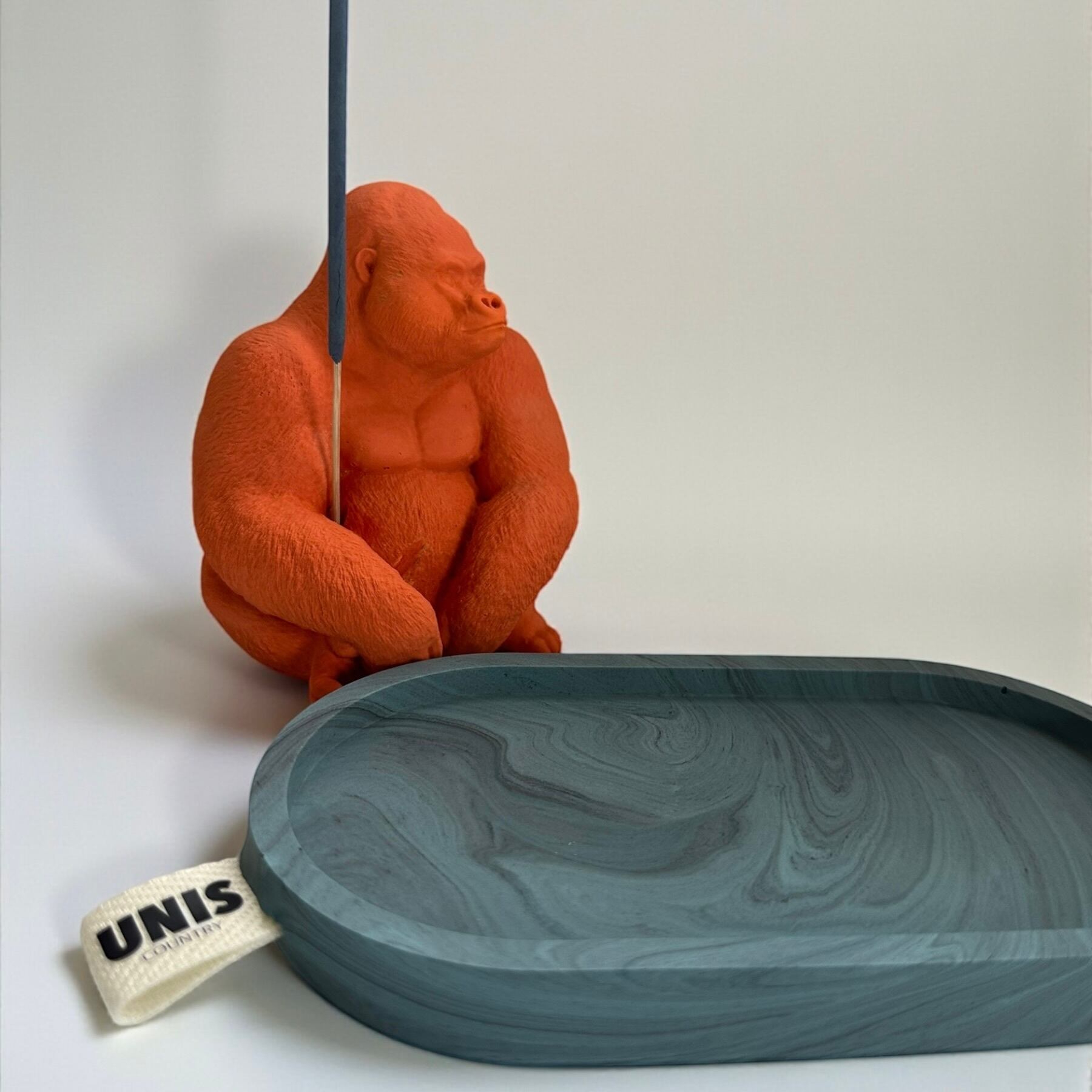 お香の長さやシーンに合わせて自由に配置を変えられ、ゴリラ単体のディスプレイとアクセサリートレイに分けて使う事も可能です。