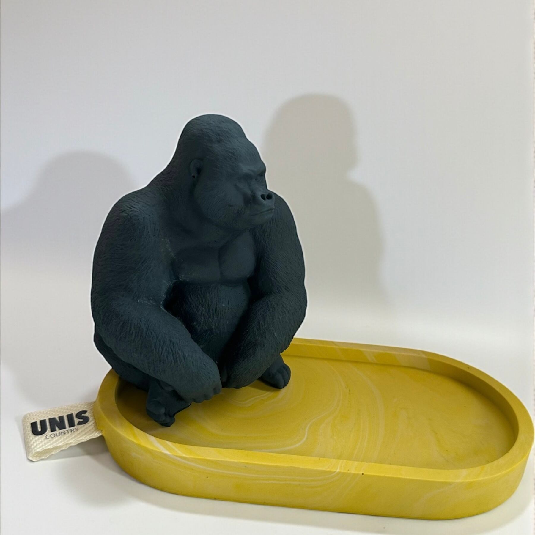 マーブル模様が映えるトレイに、ゴリラを添えた遊び心あふれるデザインです。
