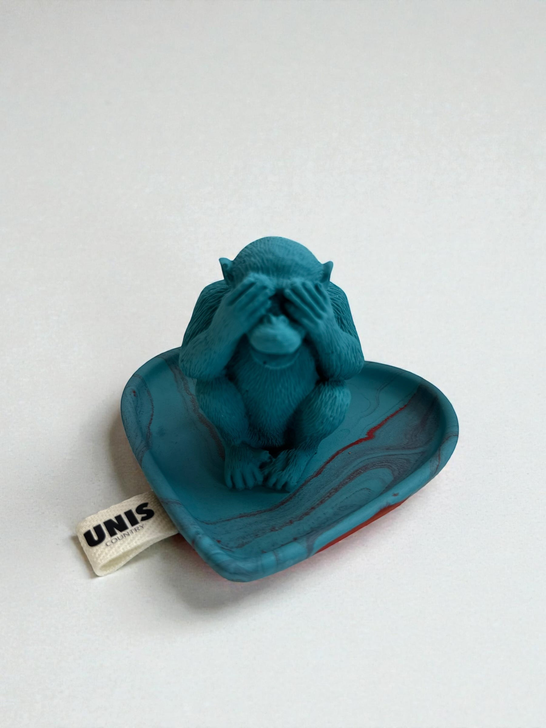 リラックスタイムに、おてんばなお猿が、お香の燃えかすが降ってくるよ〜!と目をふさぐ、思わずくすっとしてしまう表情が魅力のお香立てです。