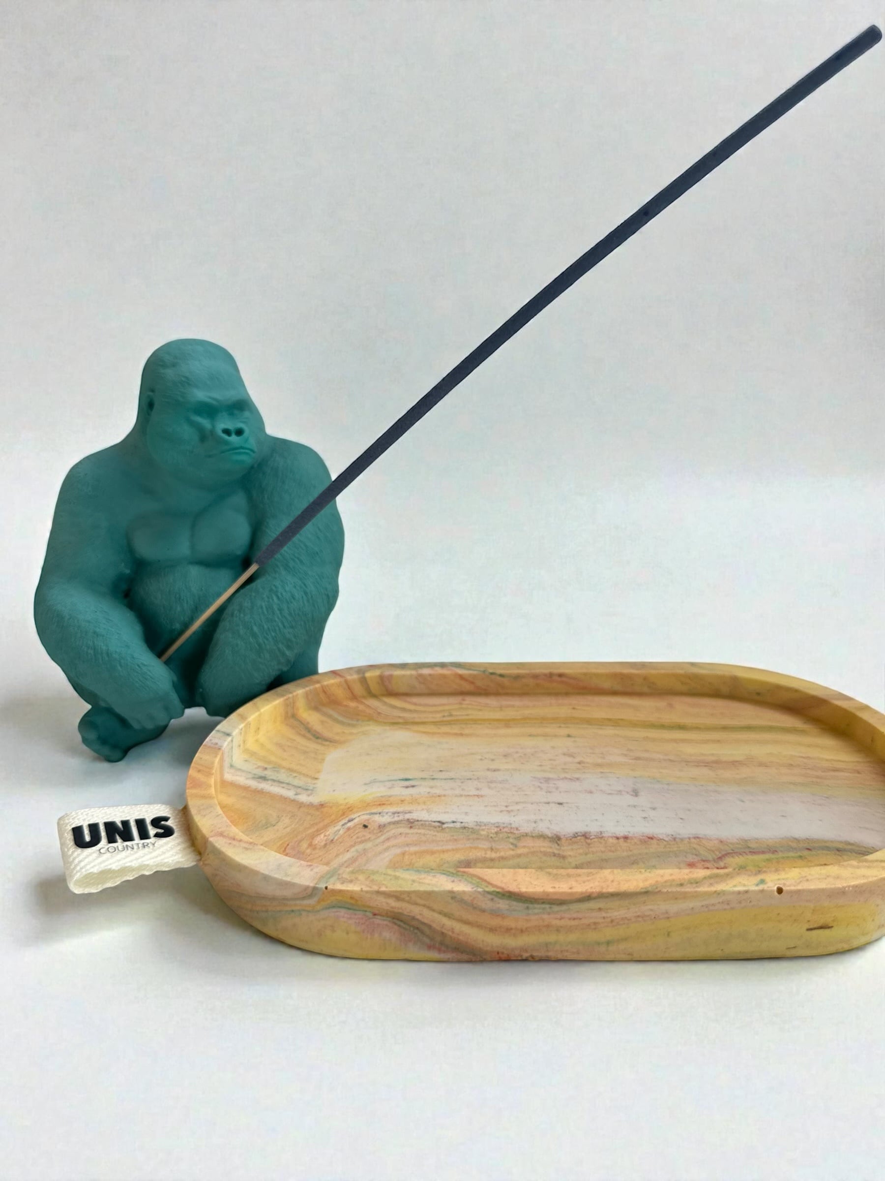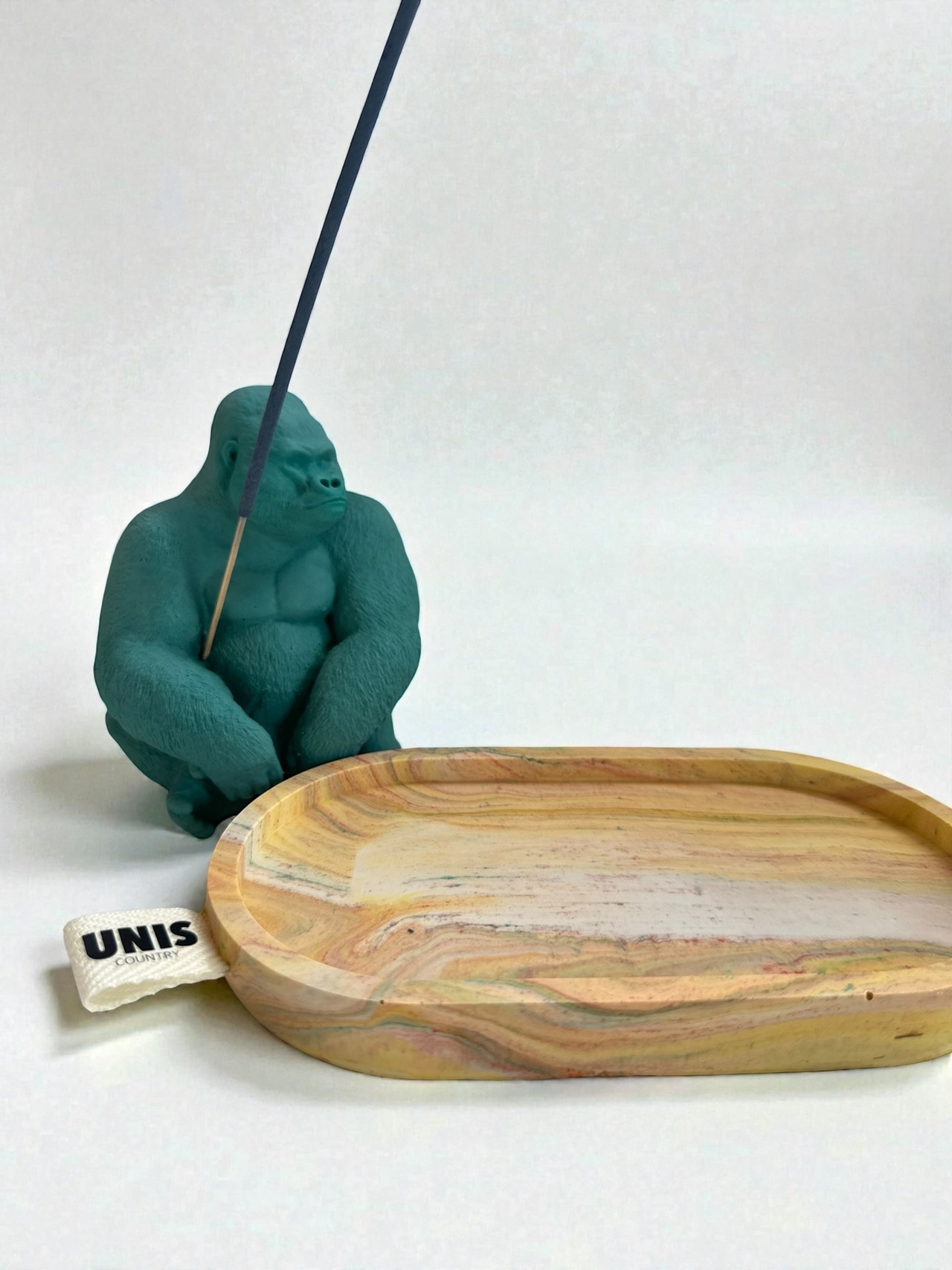 お香の長さやシーンに合わせて自由に配置を変えられ、ゴリラ単体のディスプレイとアクセサリートレイに分けて使う事も可能です。