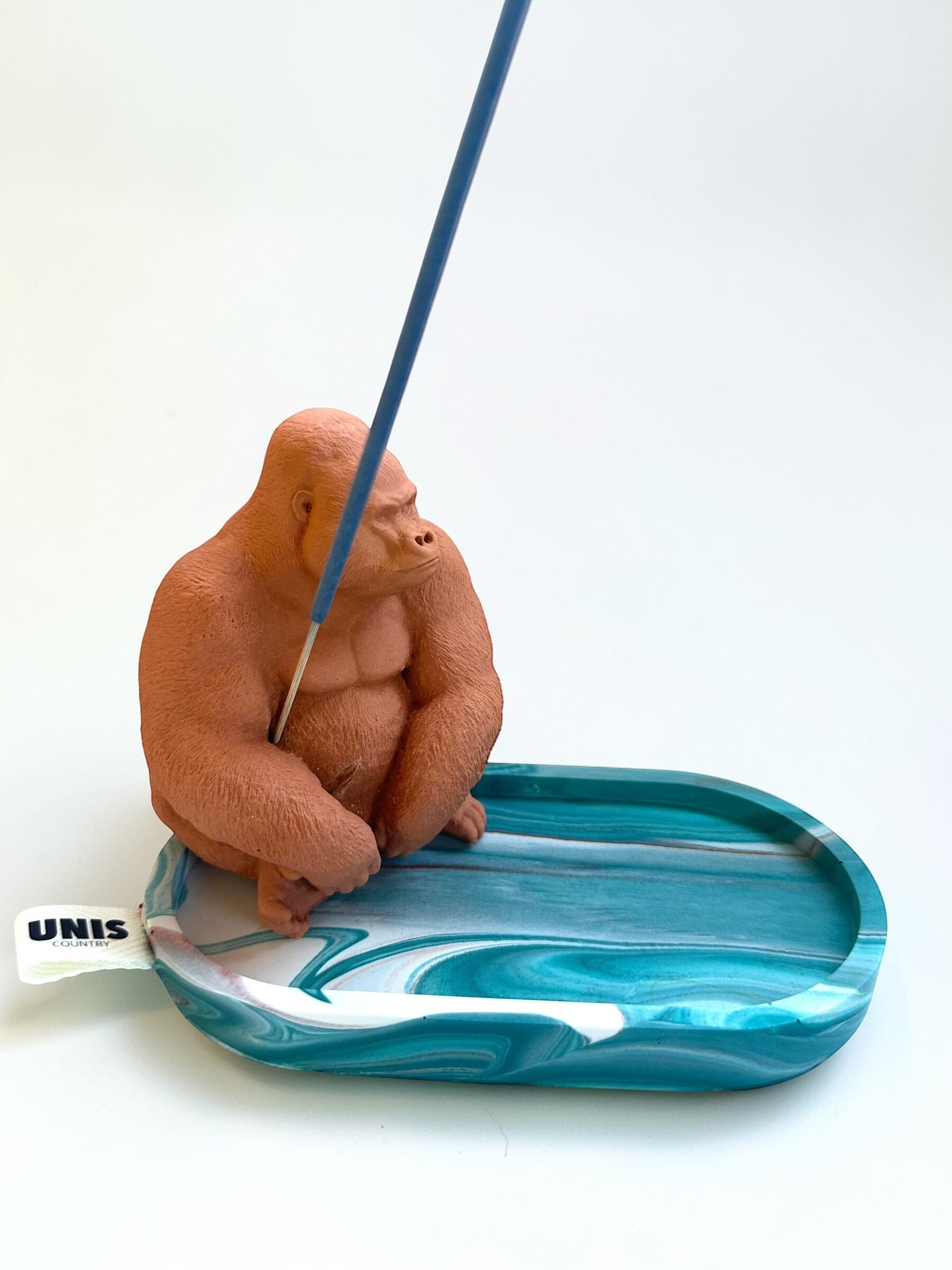 リラックスタイムにゴリラがそっと寄り添う、ユニークなお香立て。