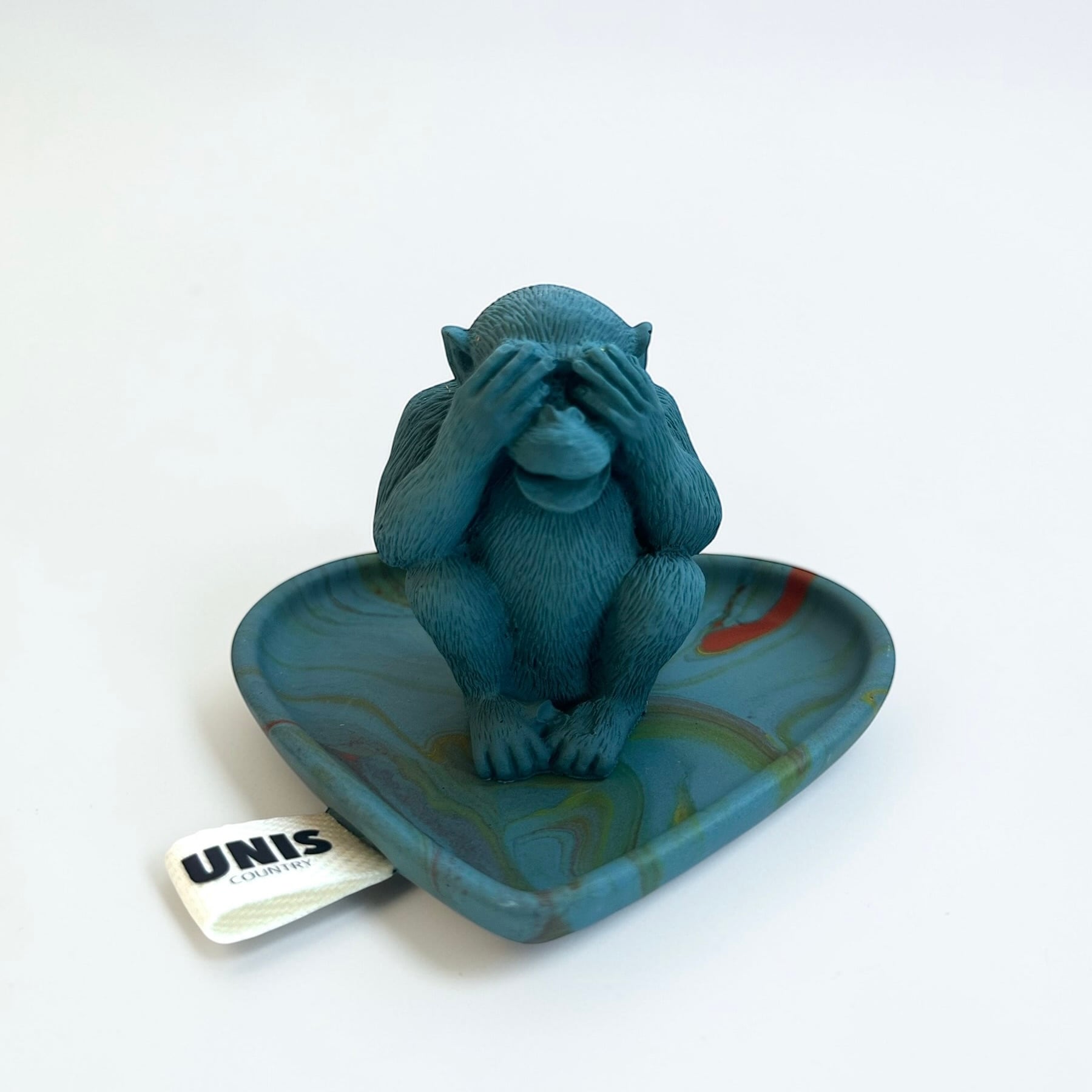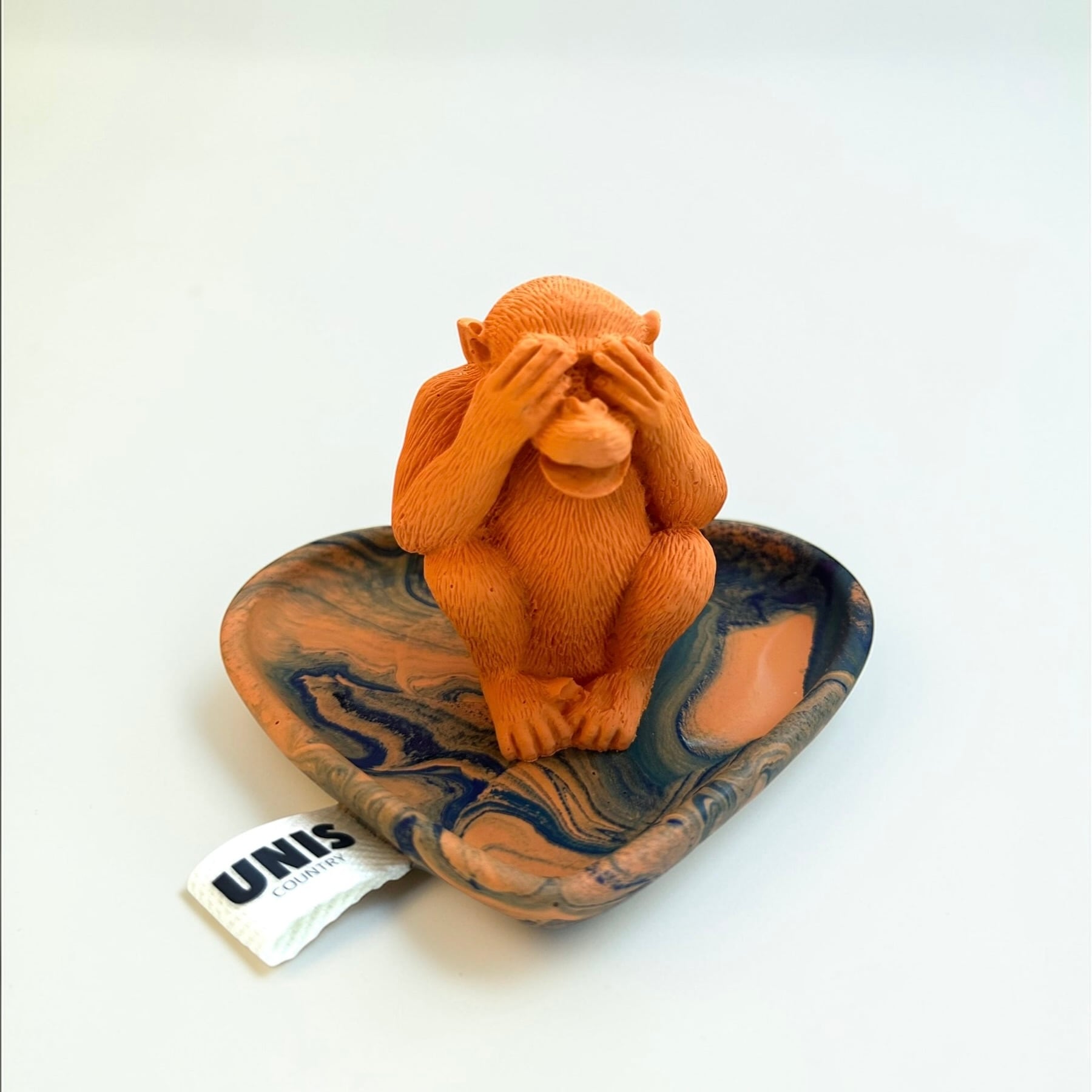 リラックスタイムに、おてんばなお猿が、お香の燃えかすが降ってくるよ〜!と目をふさぐ、思わずくすっとしてしまう表情が魅力のお香立てです。