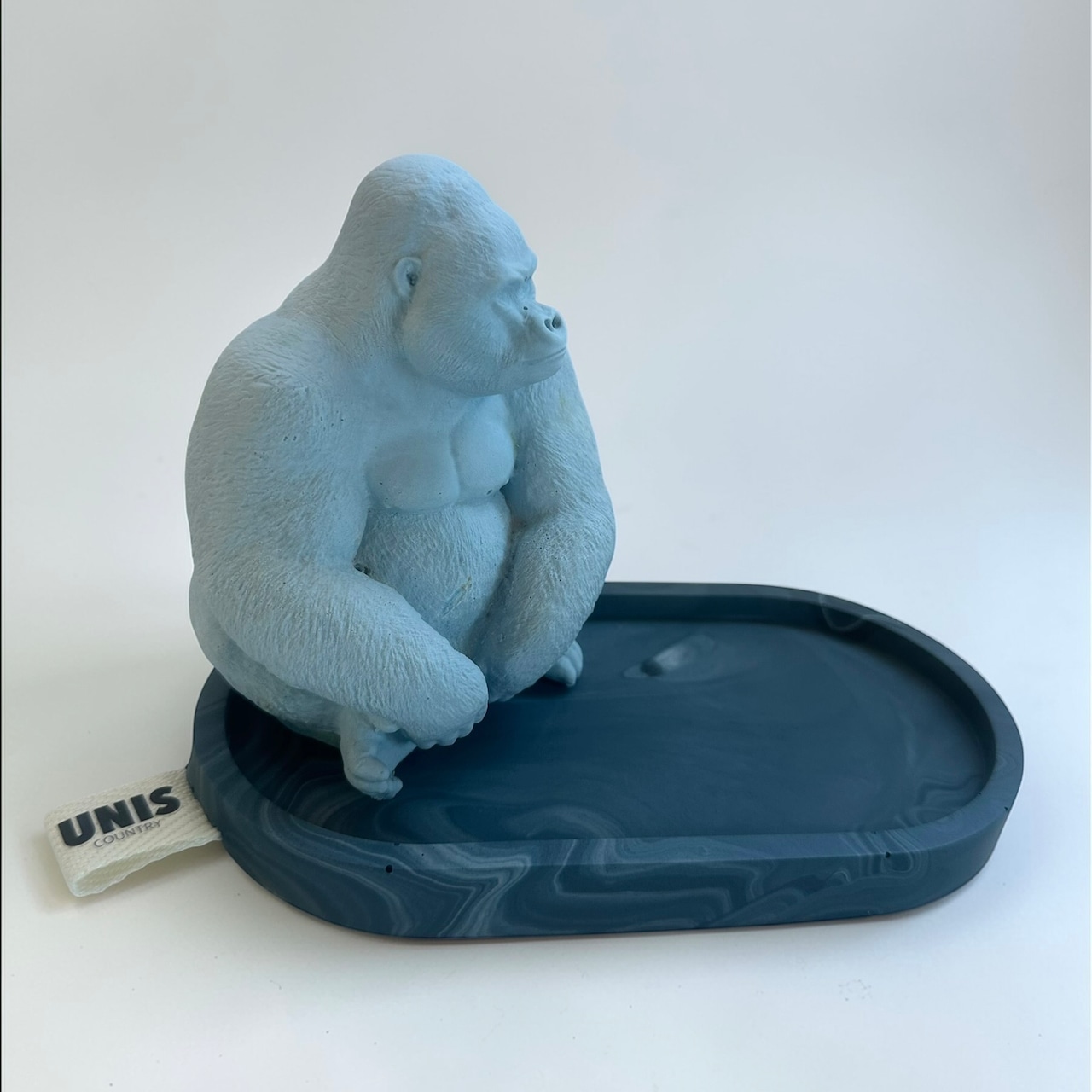 マーブル模様が映えるトレイに、ゴリラを添えた遊び心あふれるデザインです。