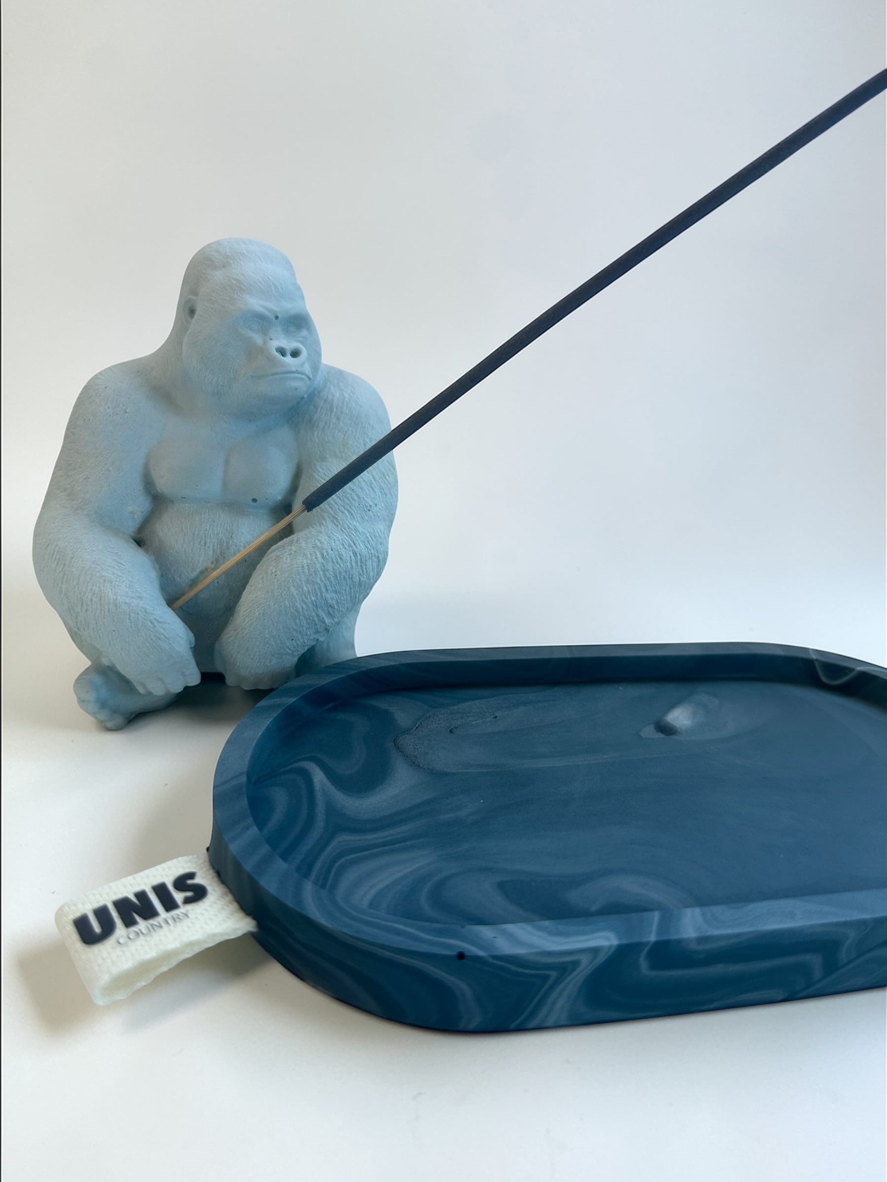 お香の長さやシーンに合わせて自由に配置を変えられ、ゴリラ単体のディスプレイとアクセサリートレイに分けて使う事も可能です。