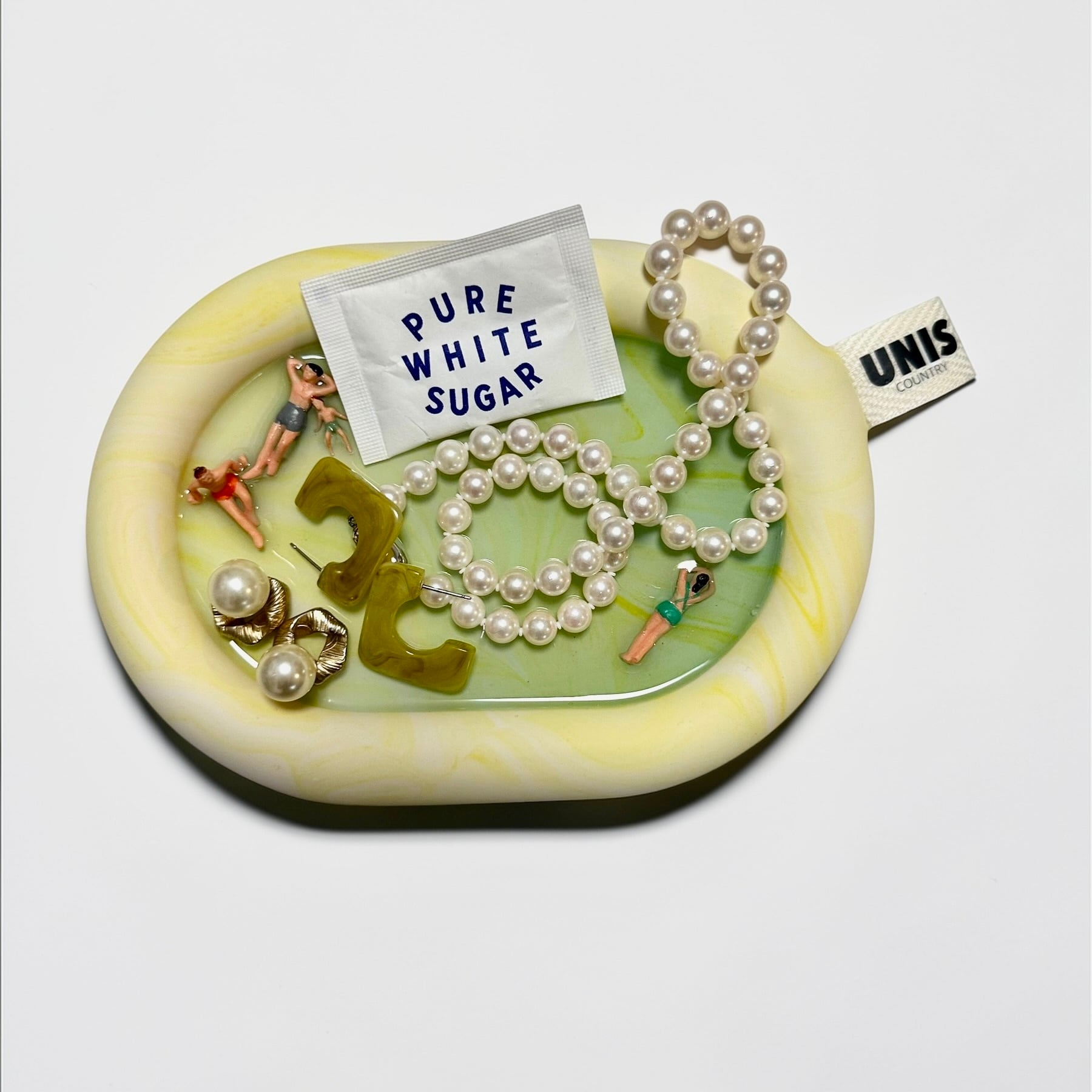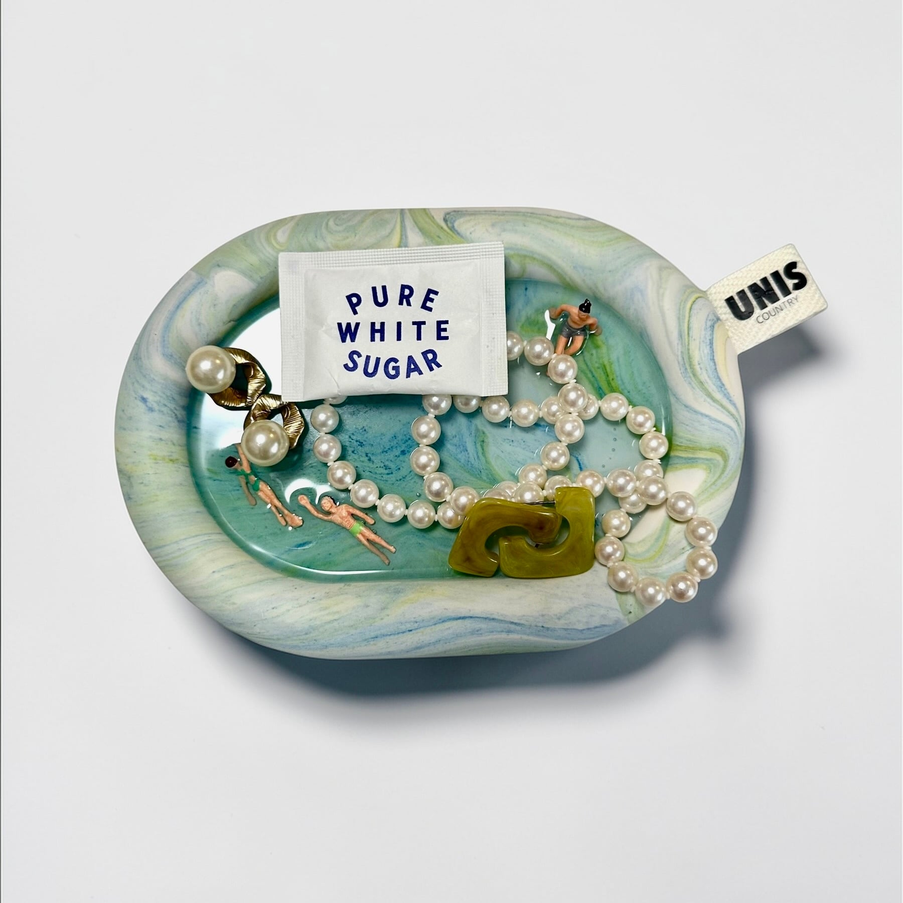 素材には、環境に配慮した安全なジェスモナイトとレジンを使用。