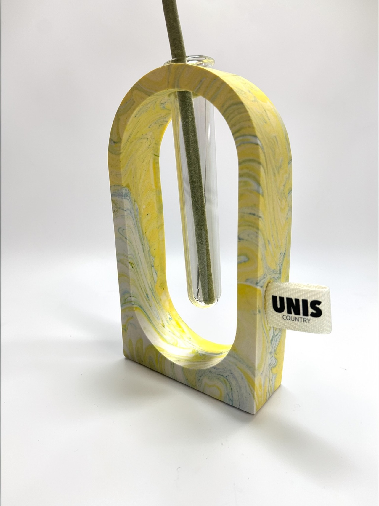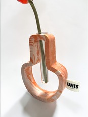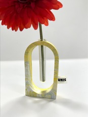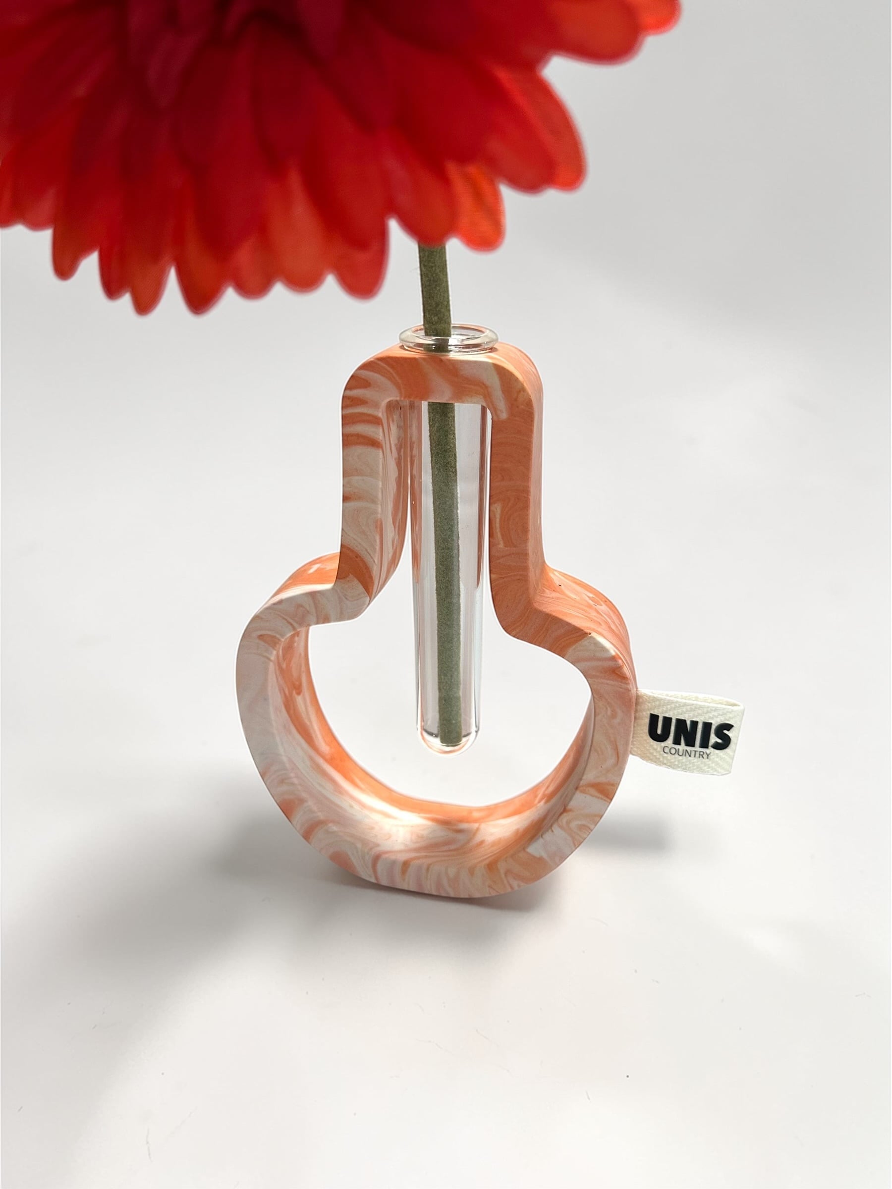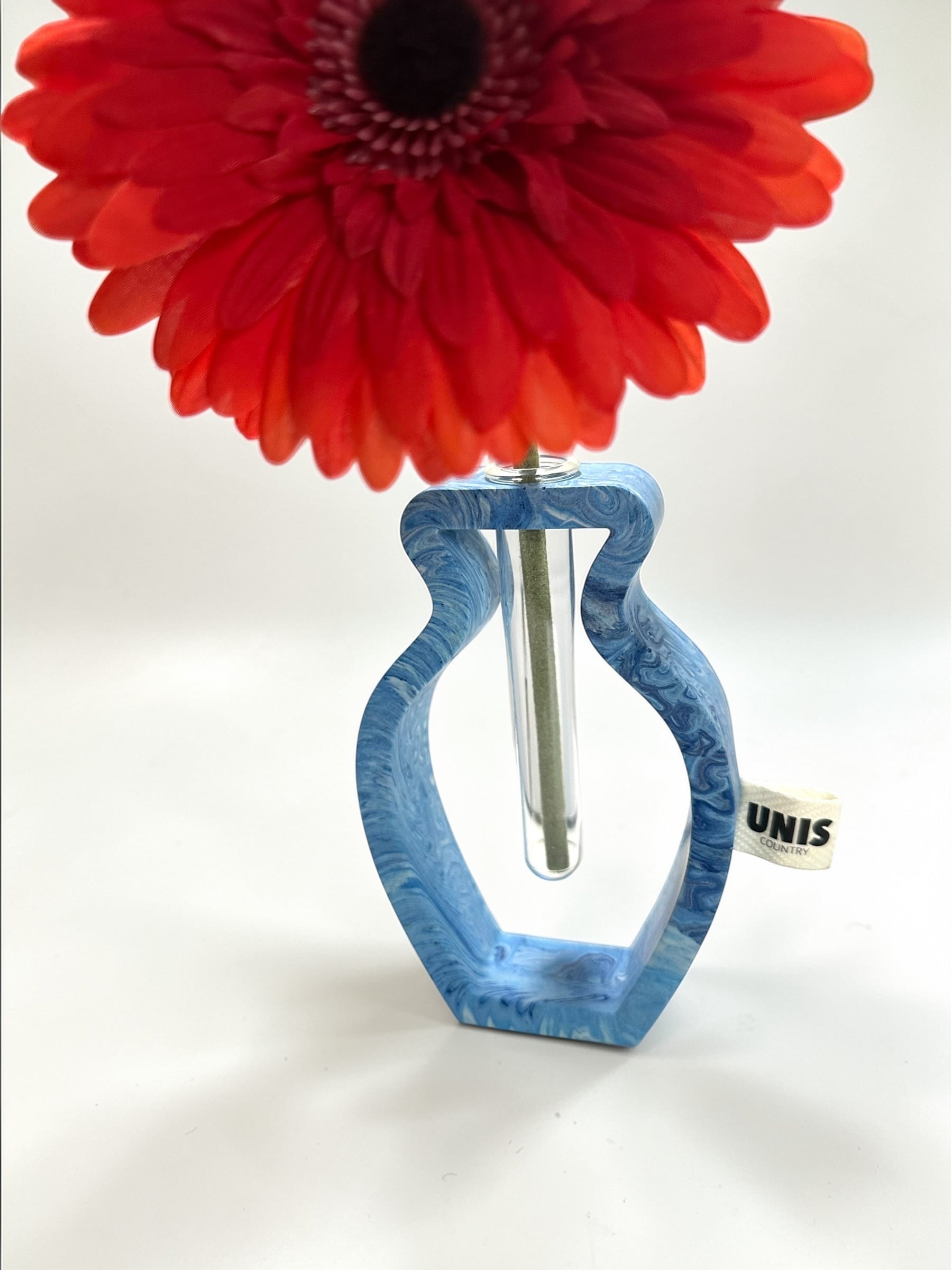 ジェスモナイトでひとつひとつ丁寧に作った本体に、試験管をゆらゆらっと通した、遊び心のあるフラワーベースです。