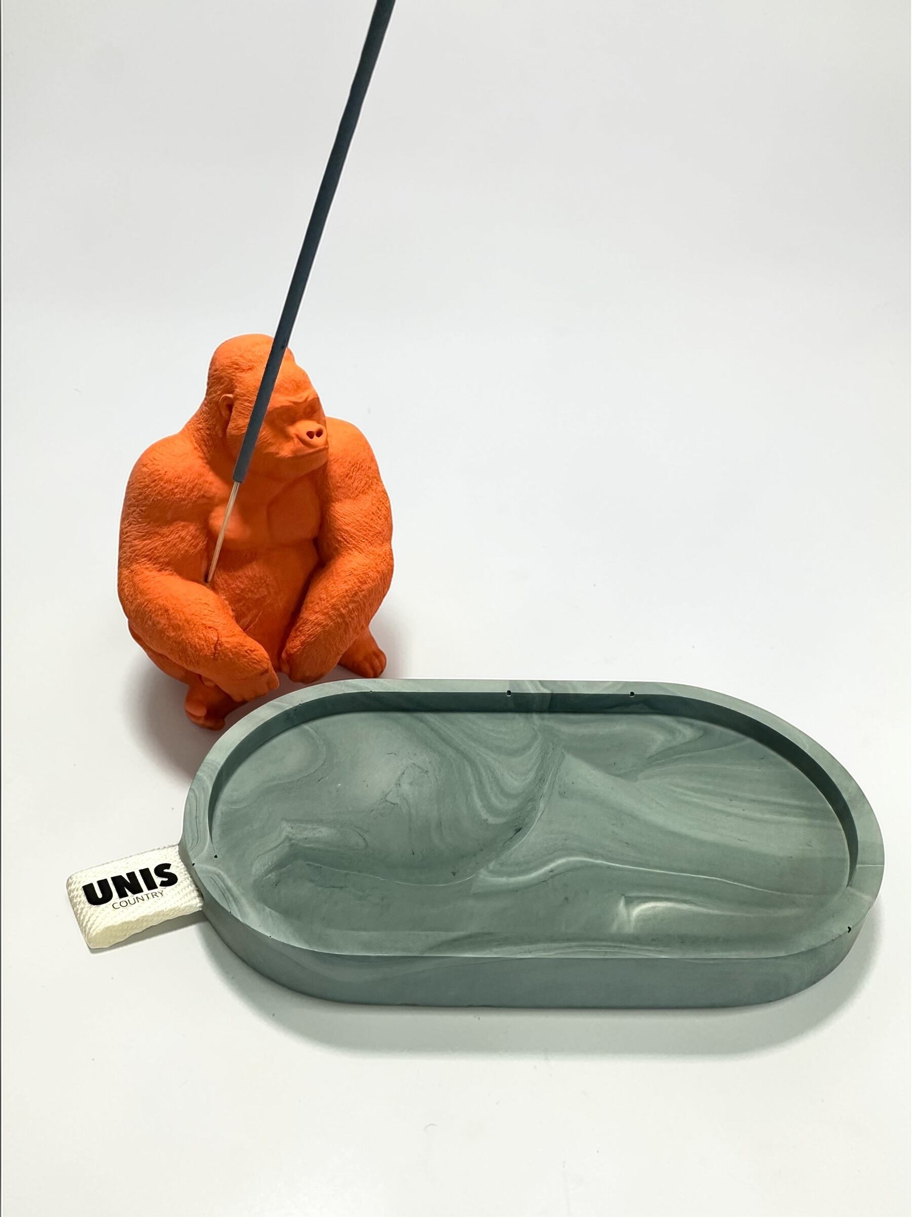 お香の長さやシーンに合わせて自由に配置を変えられ、ゴリラ単体のディスプレイとアクセサリートレイに分けて使う事も可能です。