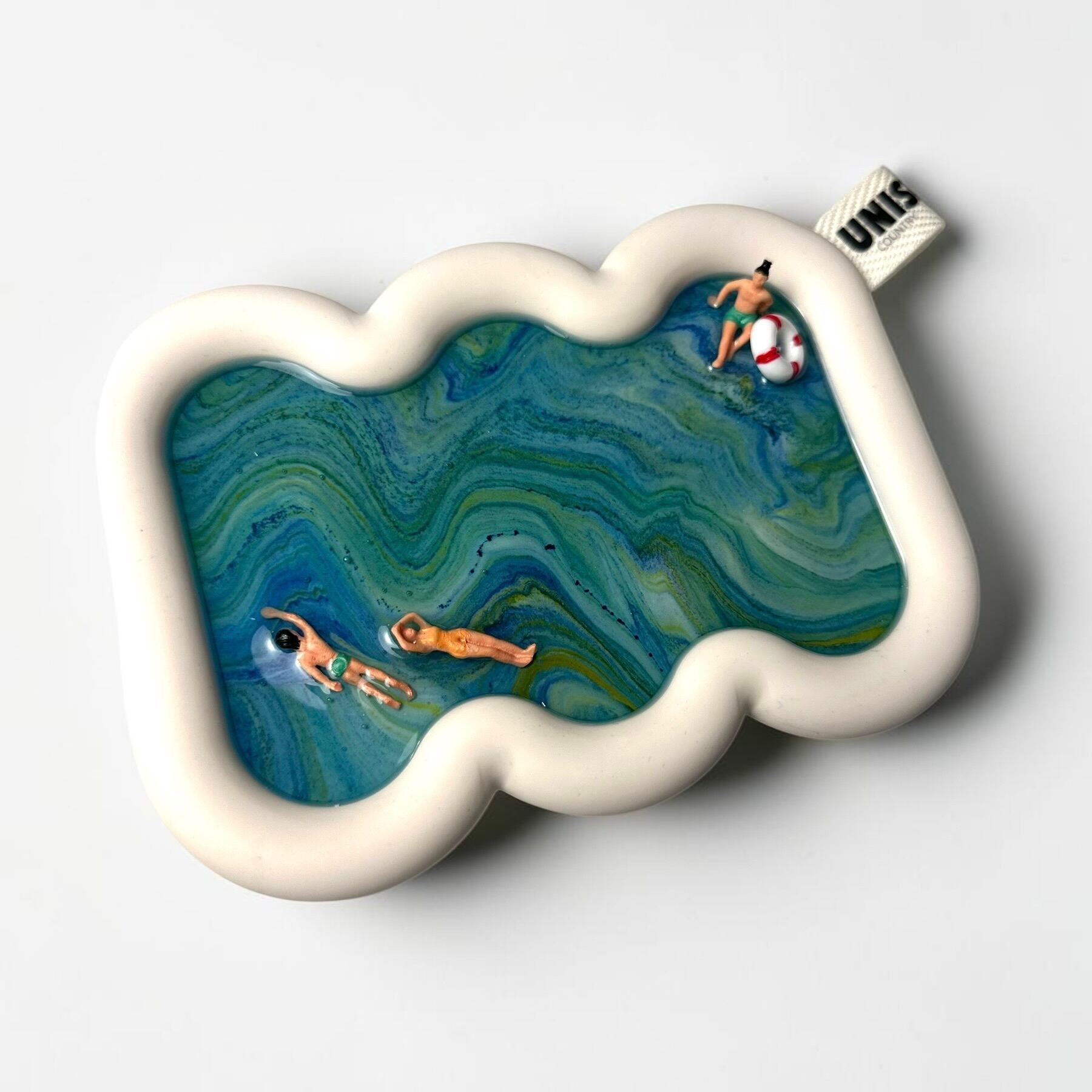 そしてプールを楽しむ人々をユニークに閉じ込めた、