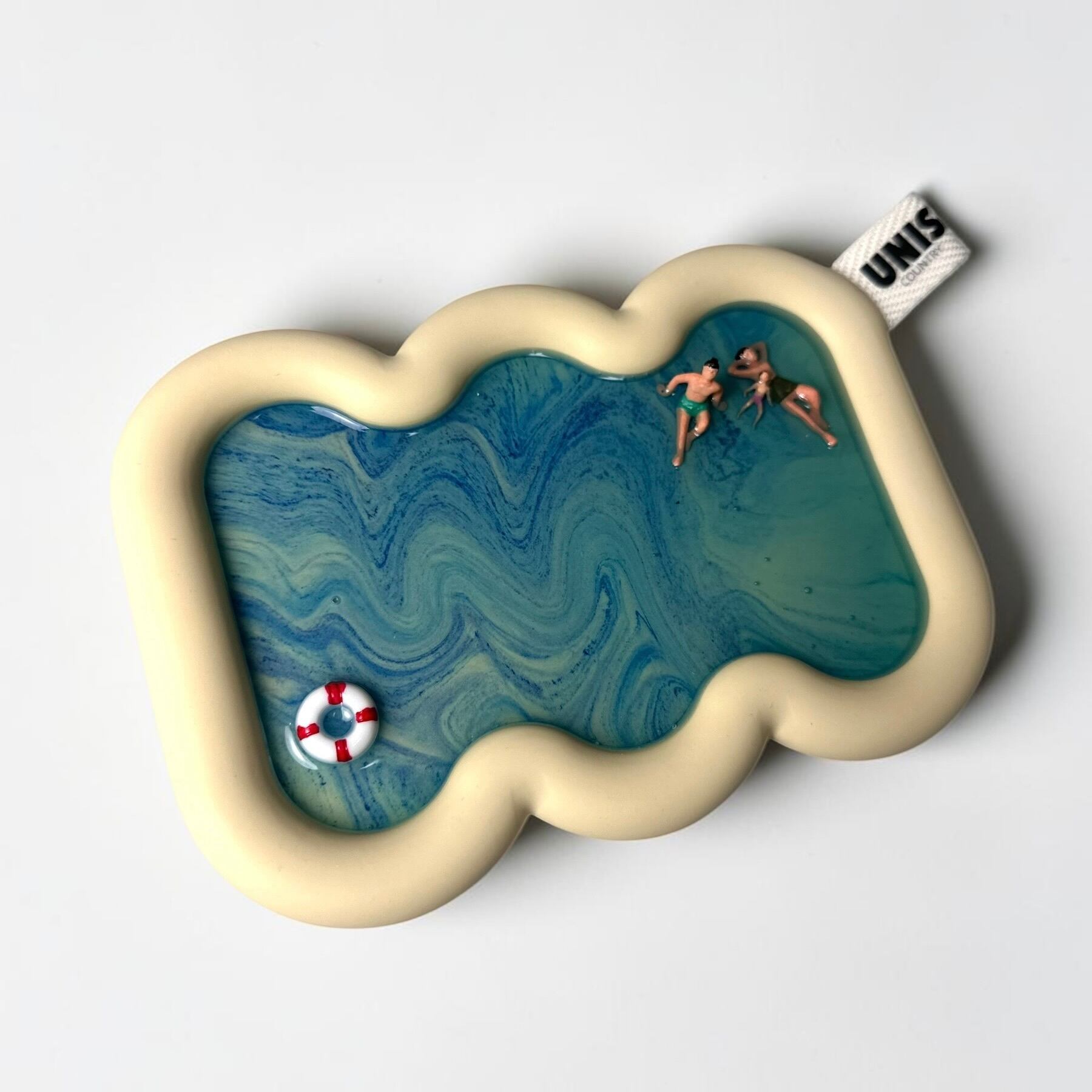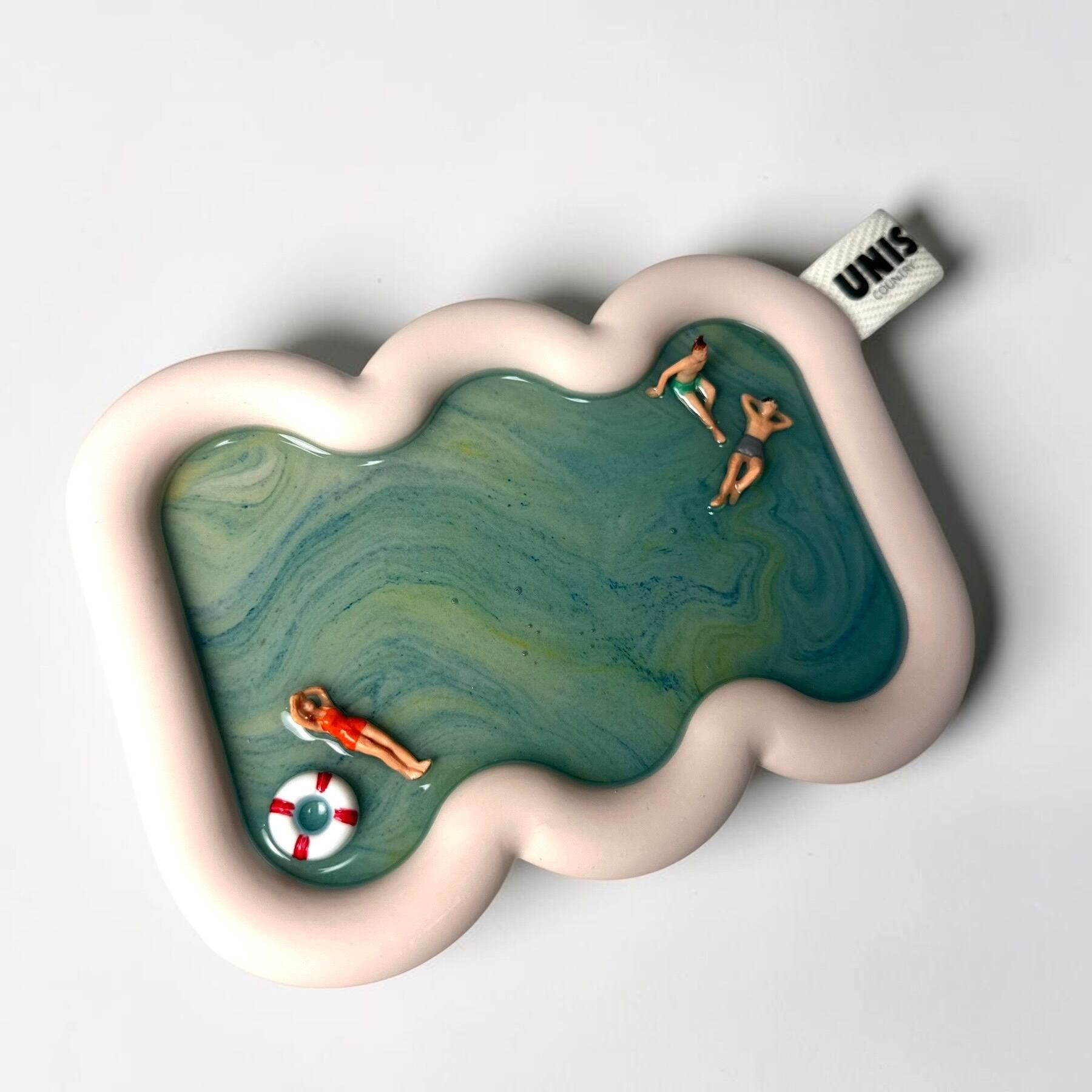 そしてプールを楽しむ人々をユニークに閉じ込めた、