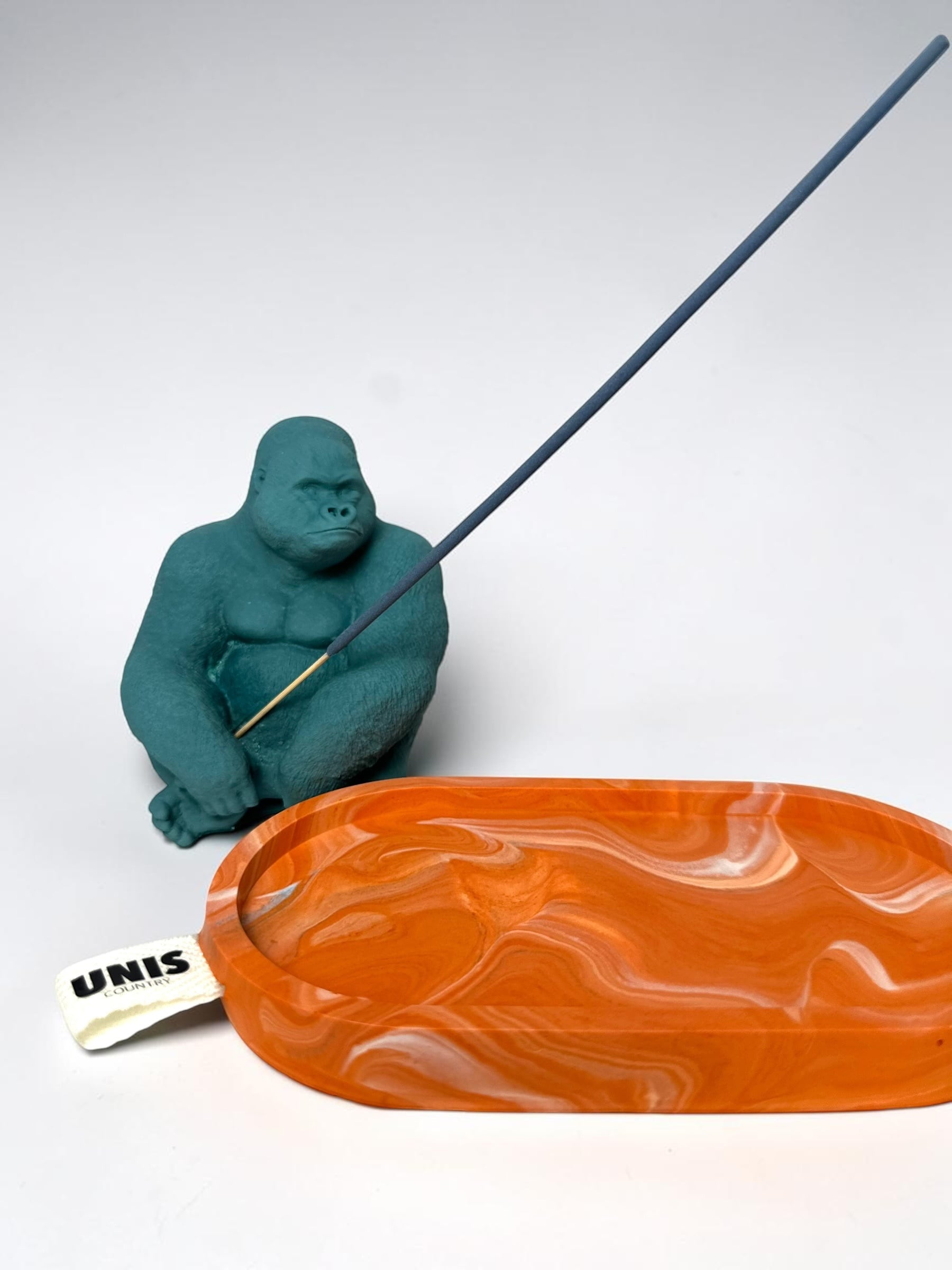 お香の長さやシーンに合わせて自由に配置を変えられ、ゴリラ単体のディスプレイとアクセサリートレイに分けて使う事も可能です。