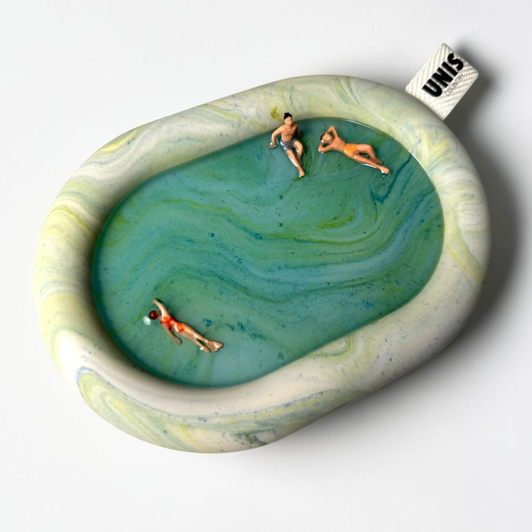 素材には、環境に配慮した安全なジェスモナイトとレジンを使用。