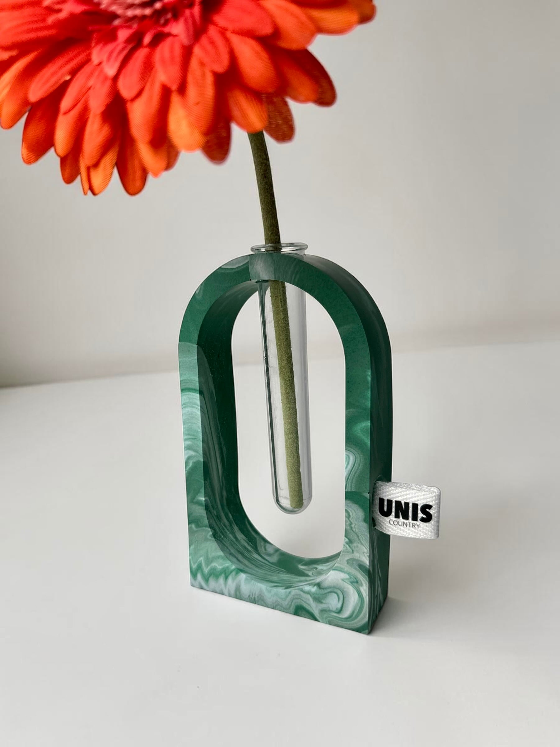試験管をゆらゆらっと通した、遊び心のあるフラワーベースです。