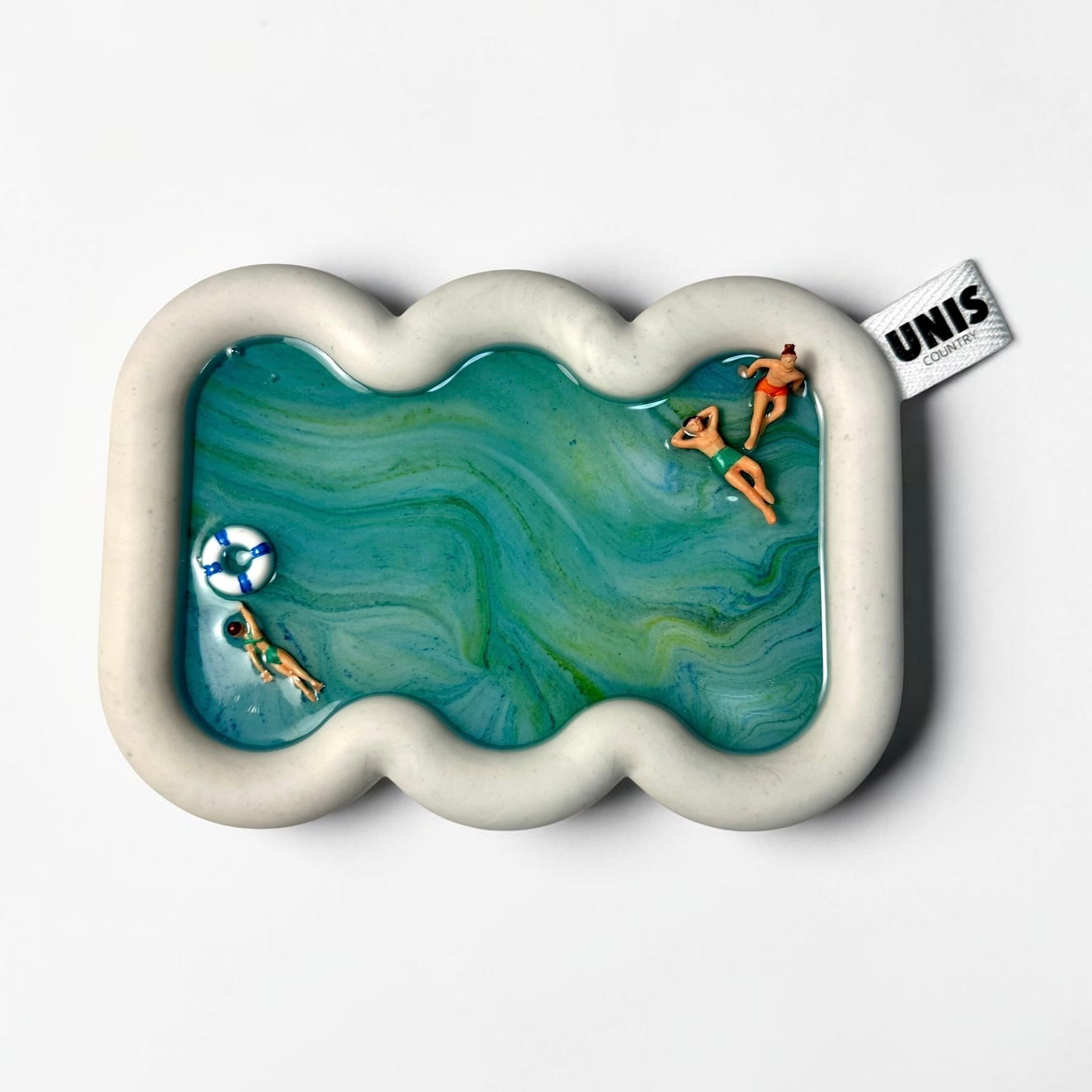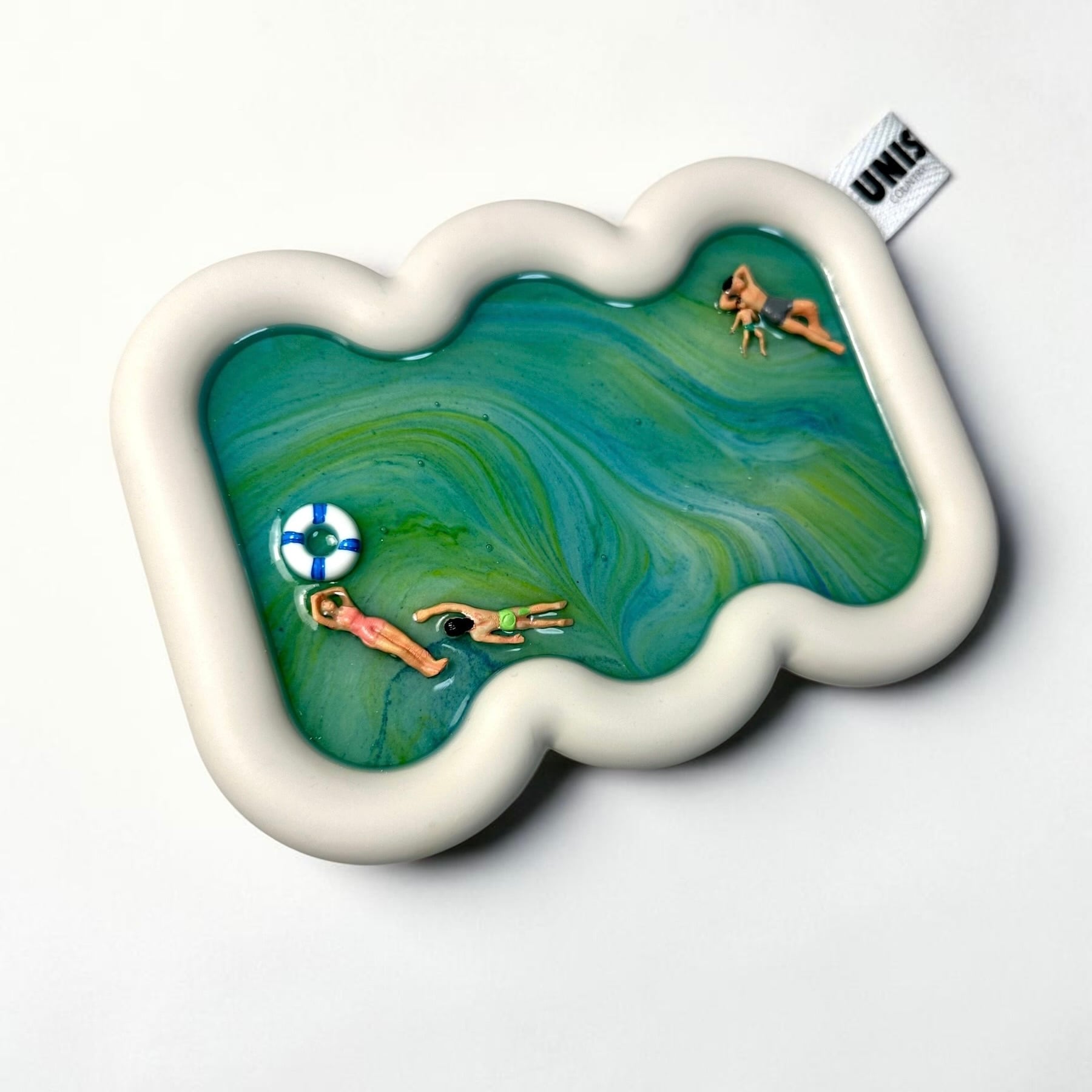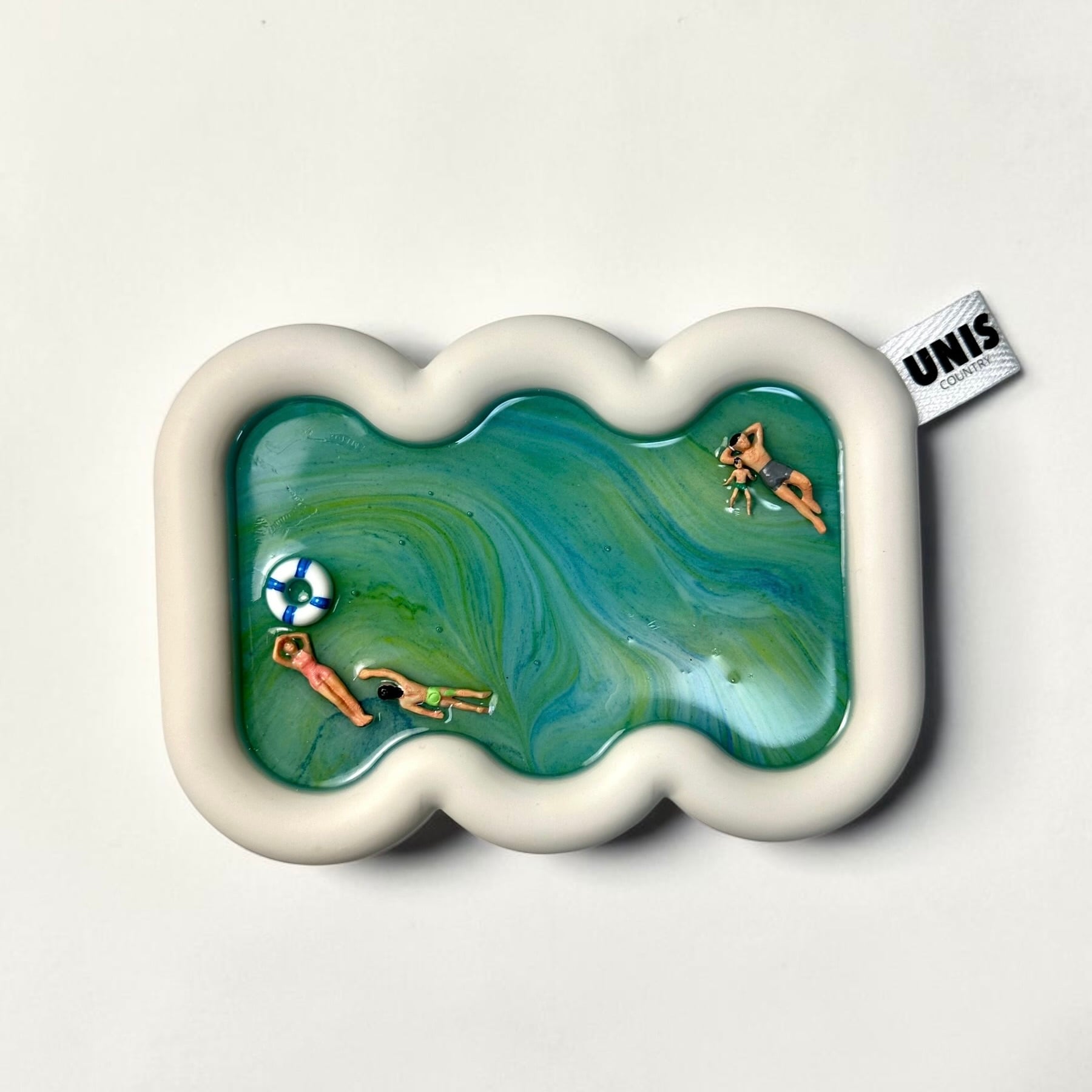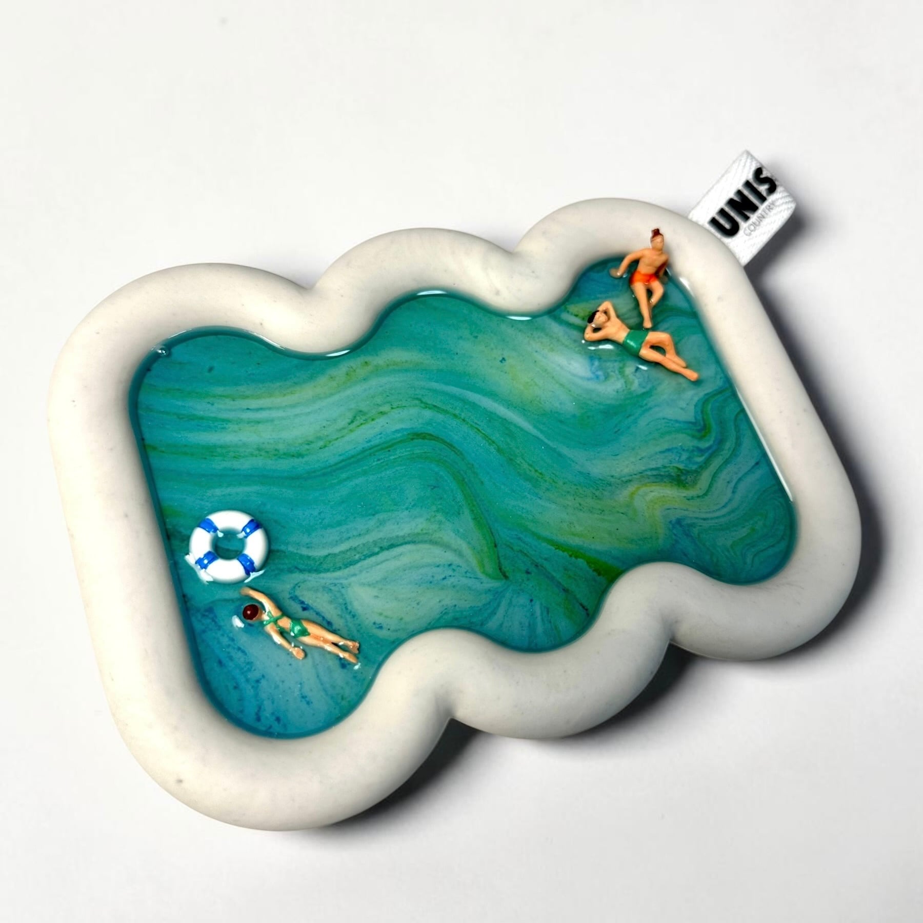 そしてプールを楽しむ人々をユニークに閉じ込めた、
